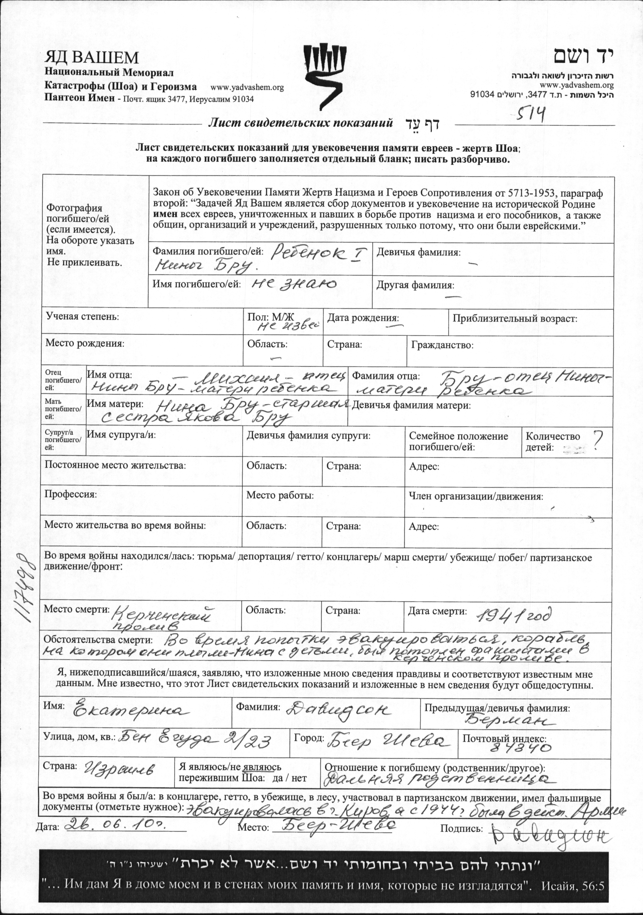 Yad Vashem - Pages of Testimony Names Memorial Collection
