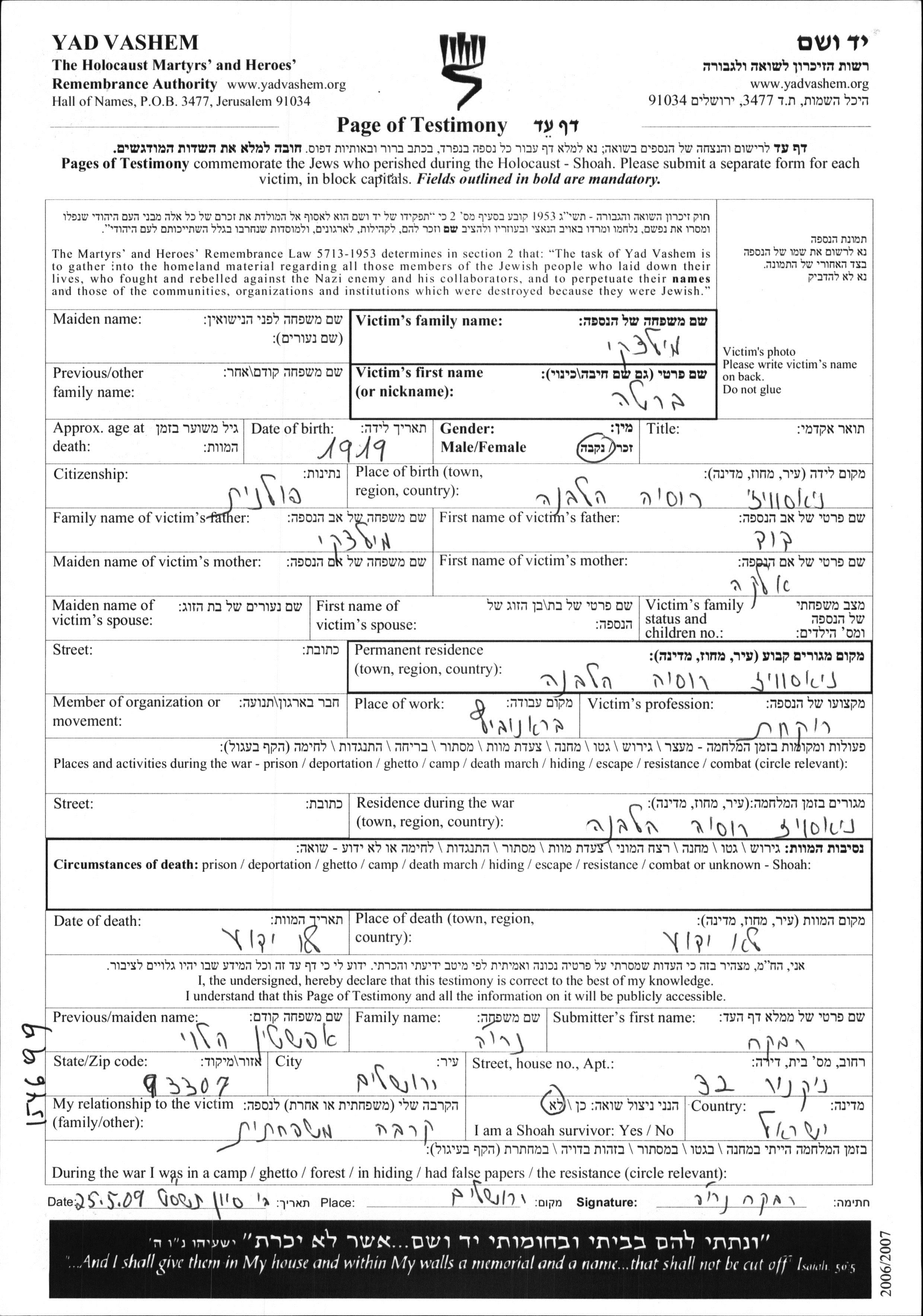 Yad Vashem - Pages of Testimony Names Memorial Collection