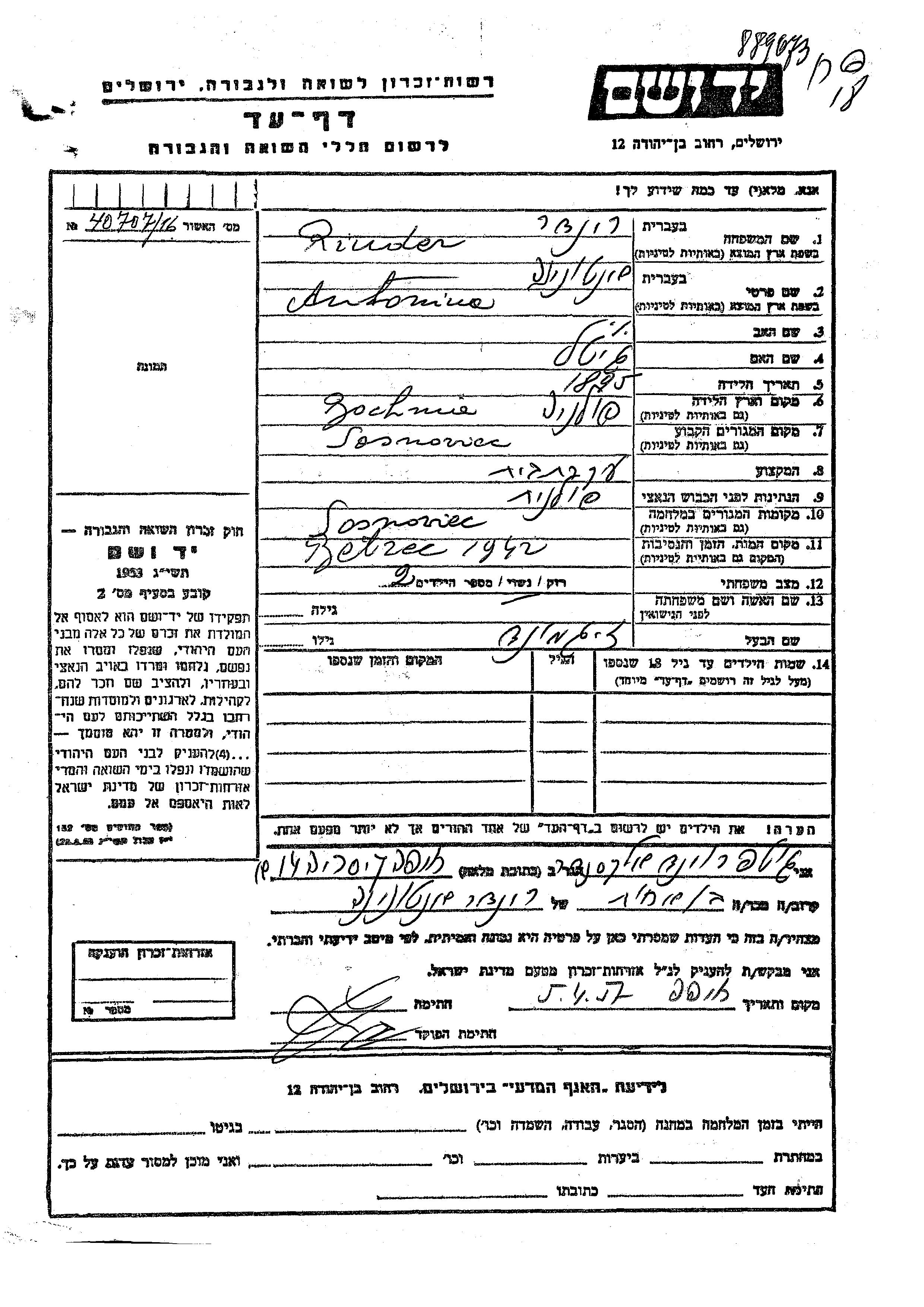 Yad Vashem - Pages of Testimony Names Memorial Collection
