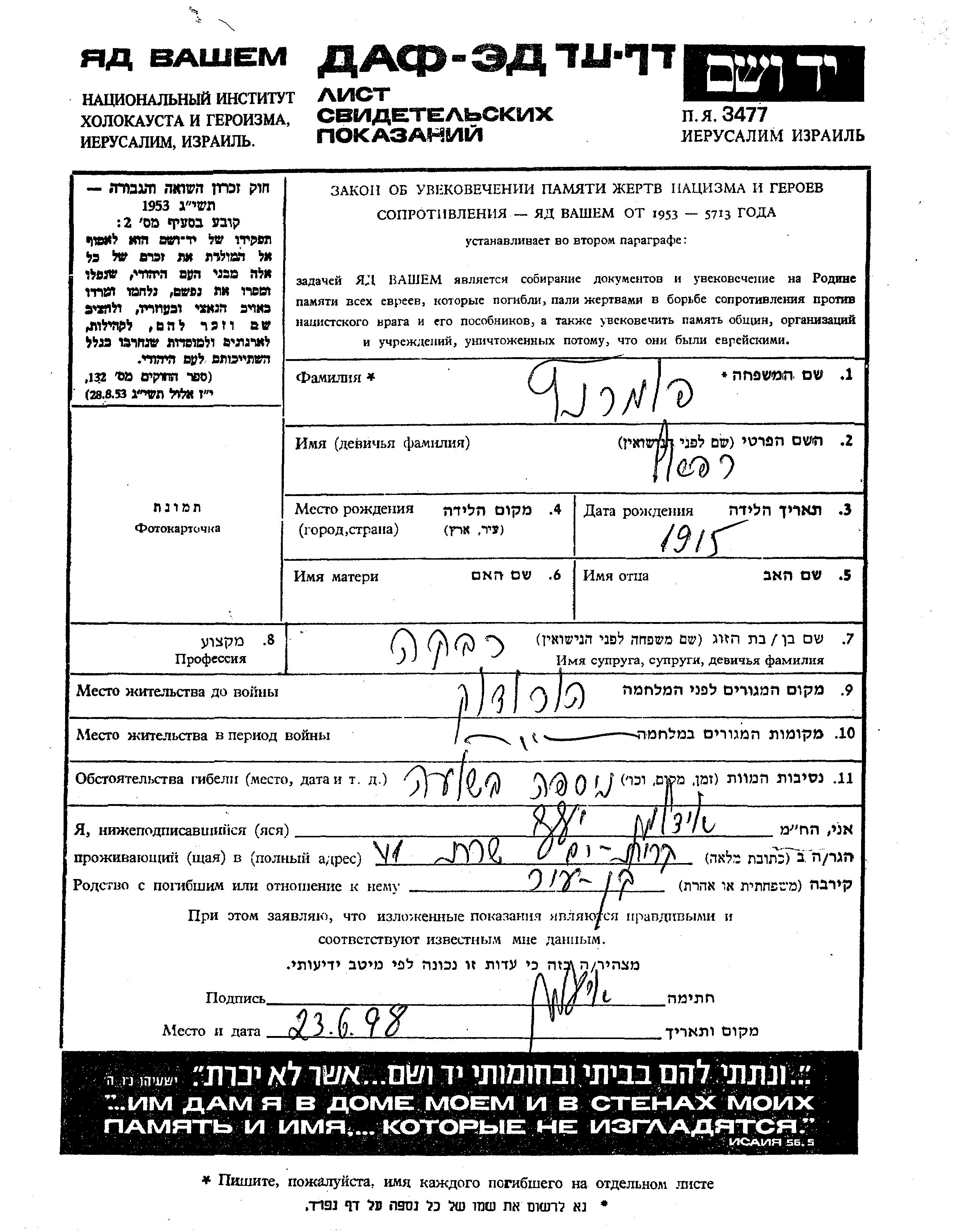 Yad Vashem - Pages of Testimony Names Memorial Collection
