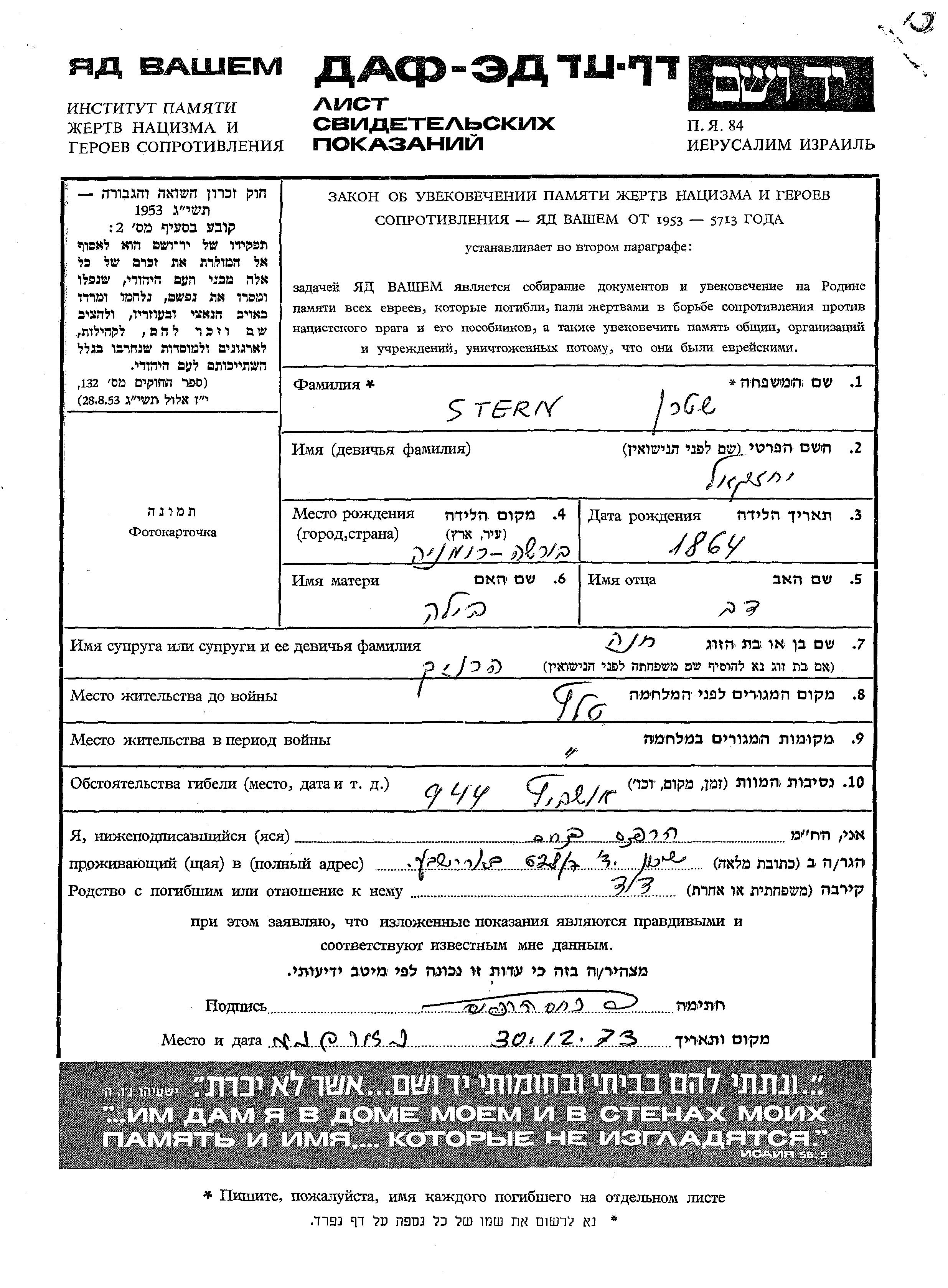 Yad Vashem - Pages of Testimony Names Memorial Collection