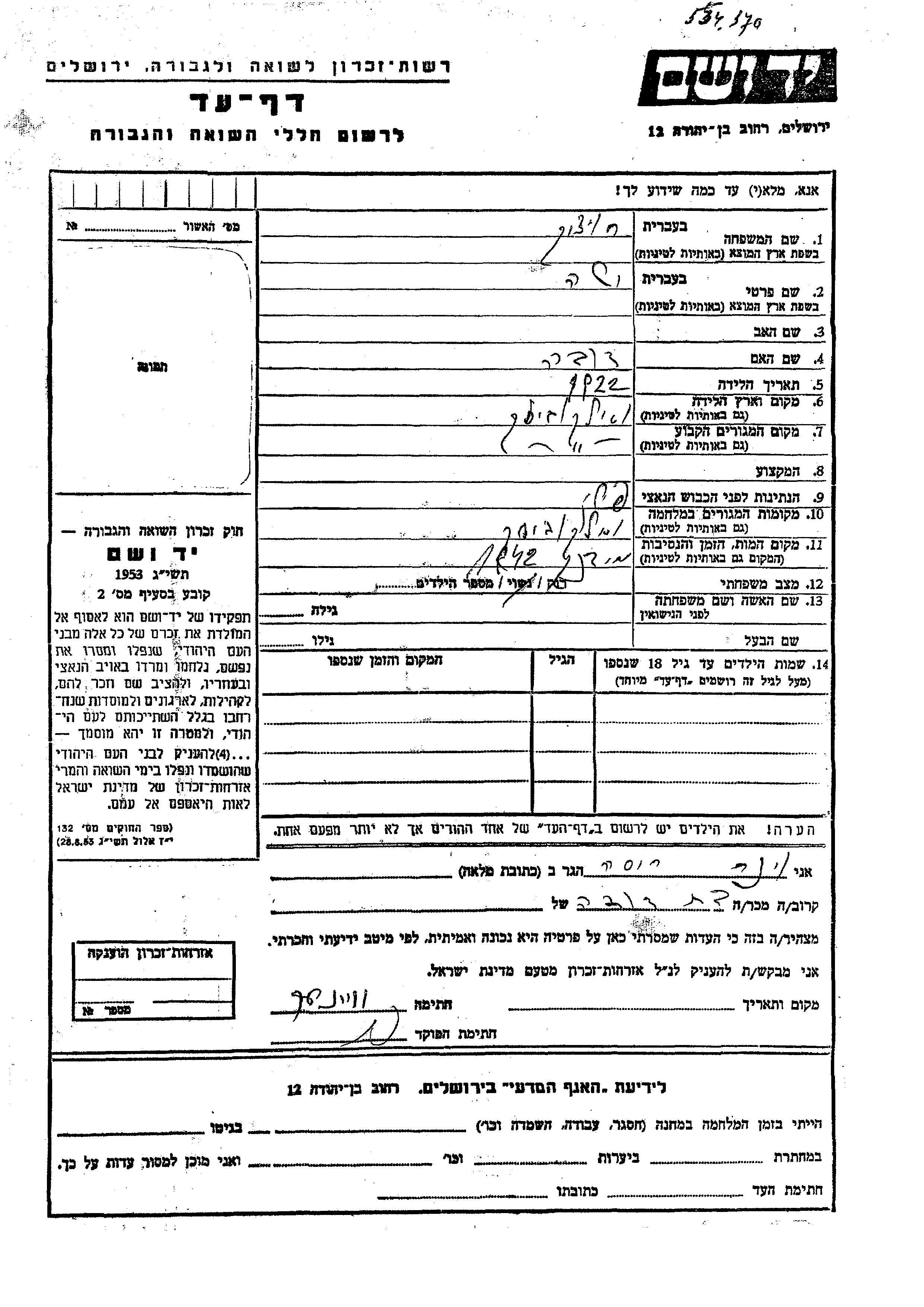 Yad Vashem - Pages of Testimony Names Memorial Collection