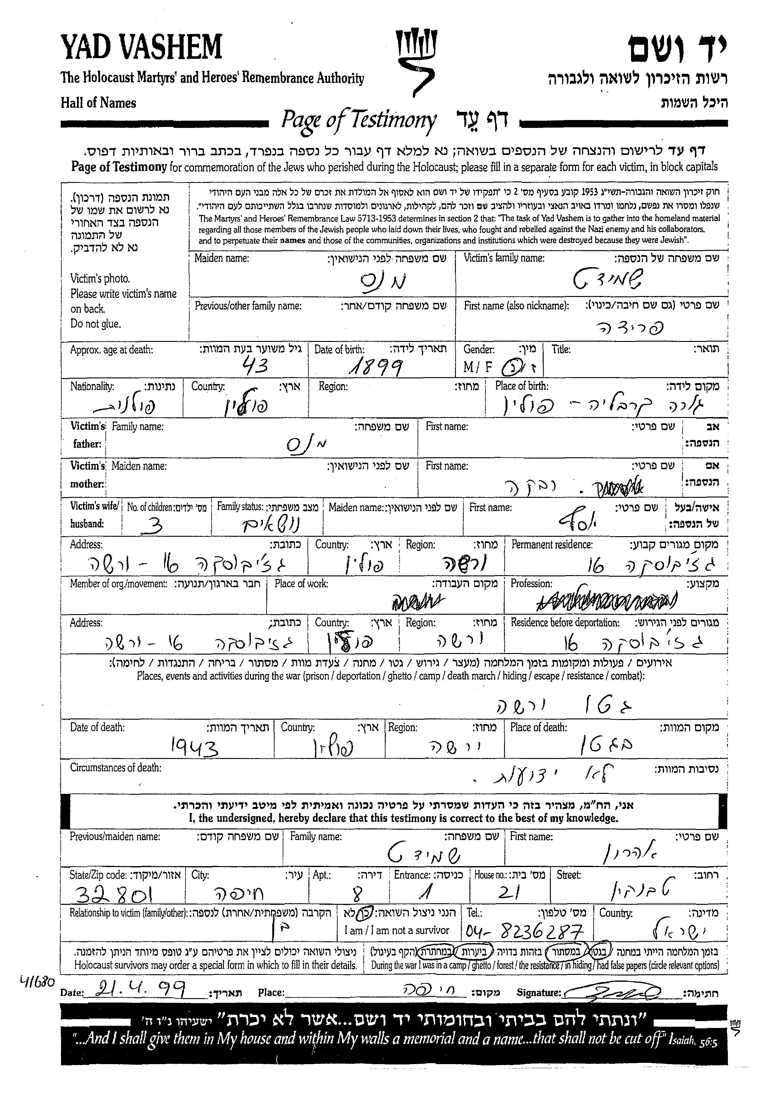 Yad Vashem - Pages of Testimony Names Memorial Collection