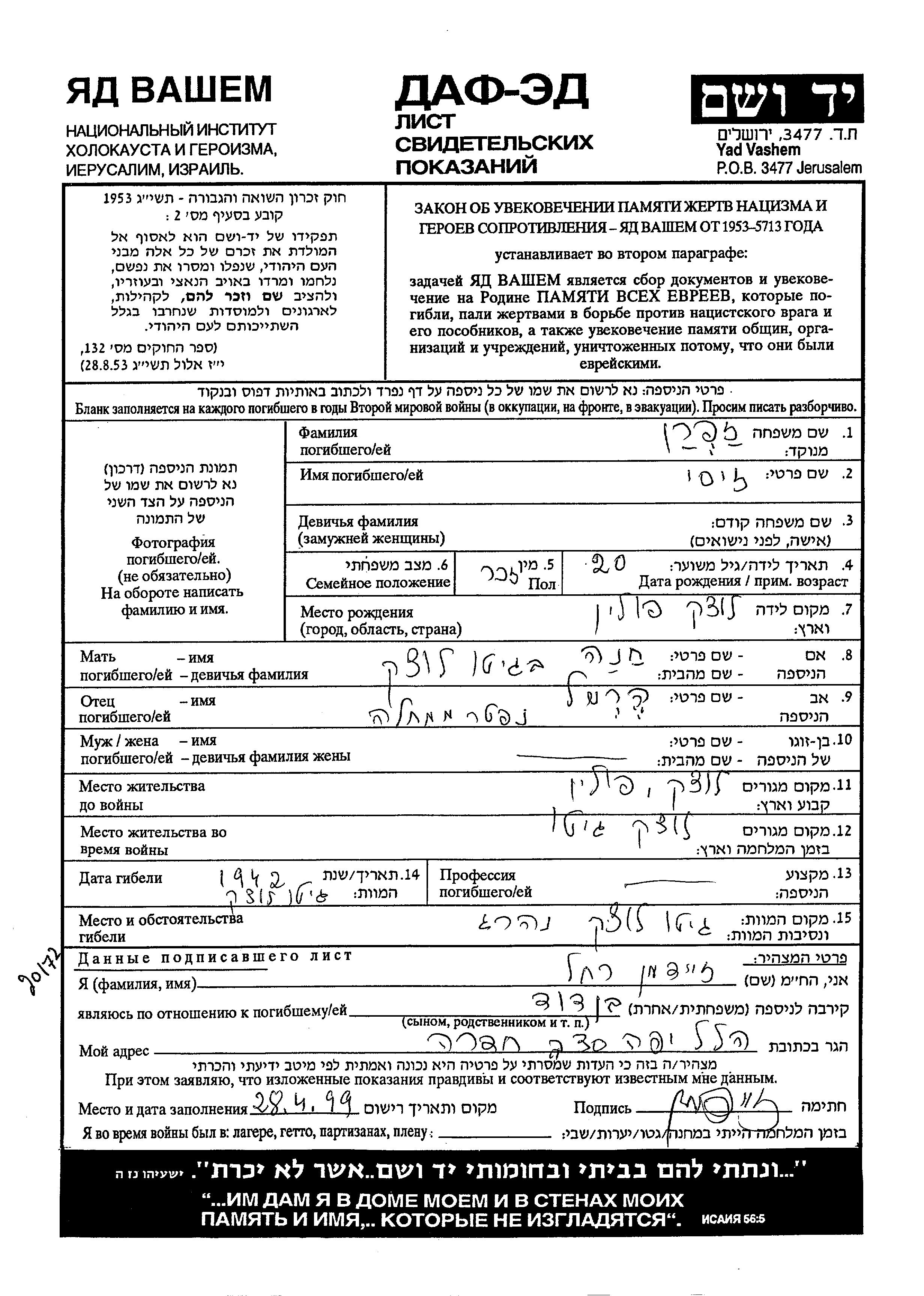 Au cours de la Shoah, les Juifs ont été assassinés de diverses façons : gazage, exécution par balle, immolation, noyade, enterrés vivants, épuisement par les travaux forcés, affamement, maladies et épidémies, privation de soins médicaux et de mesures de salubrité, etc. Certains Juifs ont mis fin à leur vie pour échapper à l'arrestation, aux  persécutions ou aux souffrances permanentes et sans aucun espoir. Des dizaines de milliers de soldats juifs servant dans l’armée soviétique et capturés comme prisonniers de guerre furent sélectionnés comme juifs et assassinés. Beaucoup furent enregistrés comme «disparus au combat».