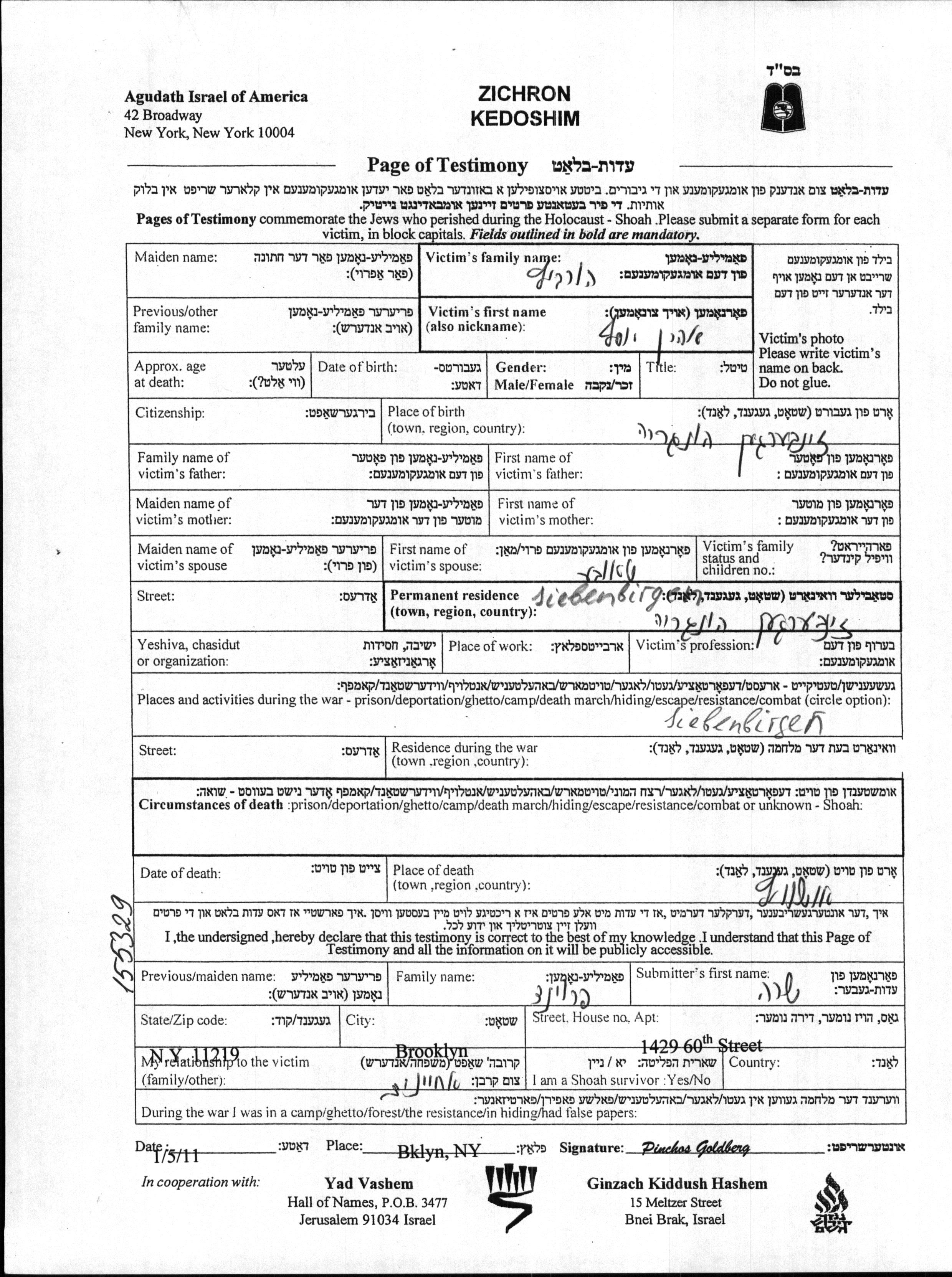 Yad Vashem - Pages of Testimony Names Memorial Collection