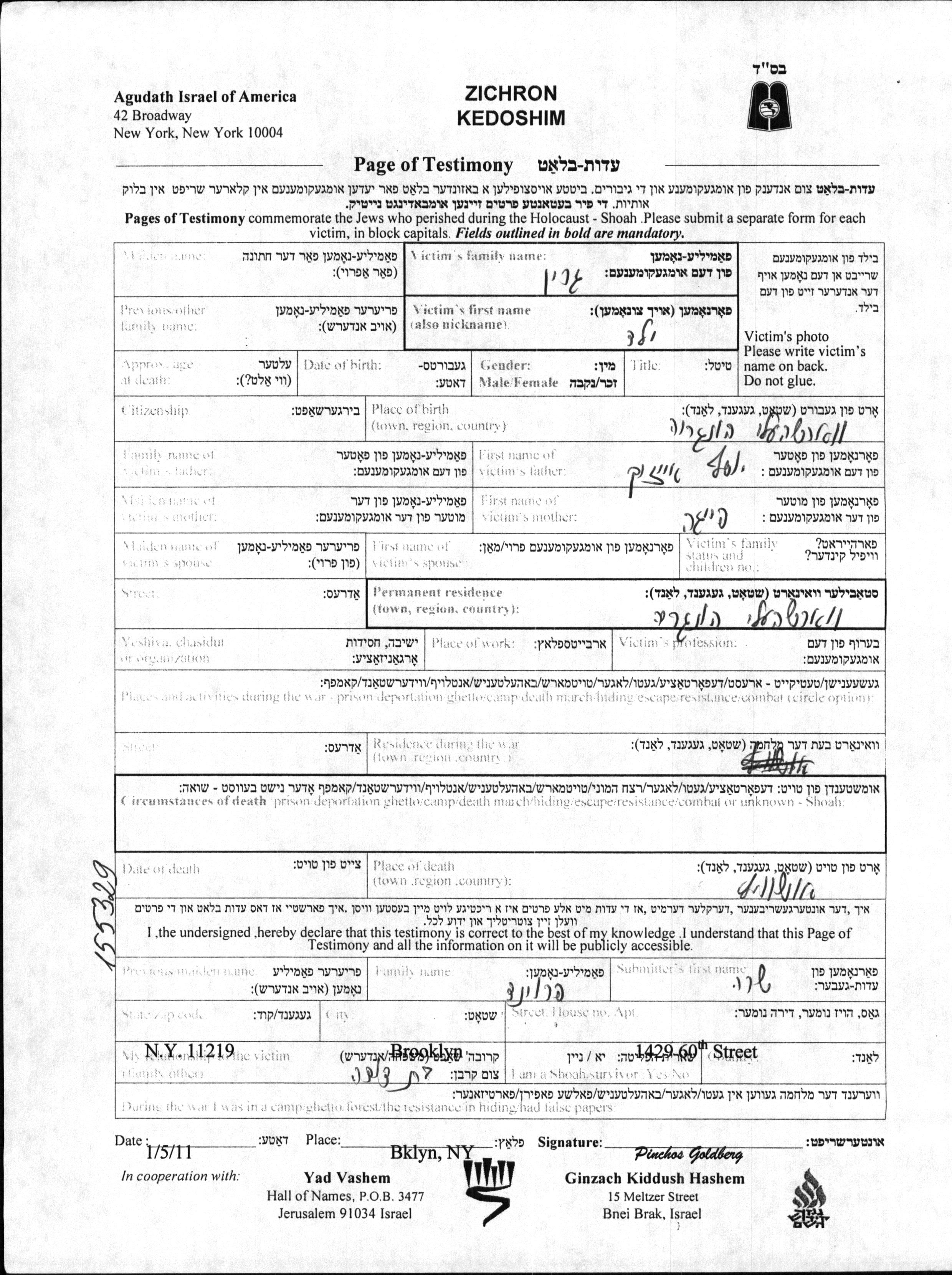Yad Vashem - Pages of Testimony Names Memorial Collection