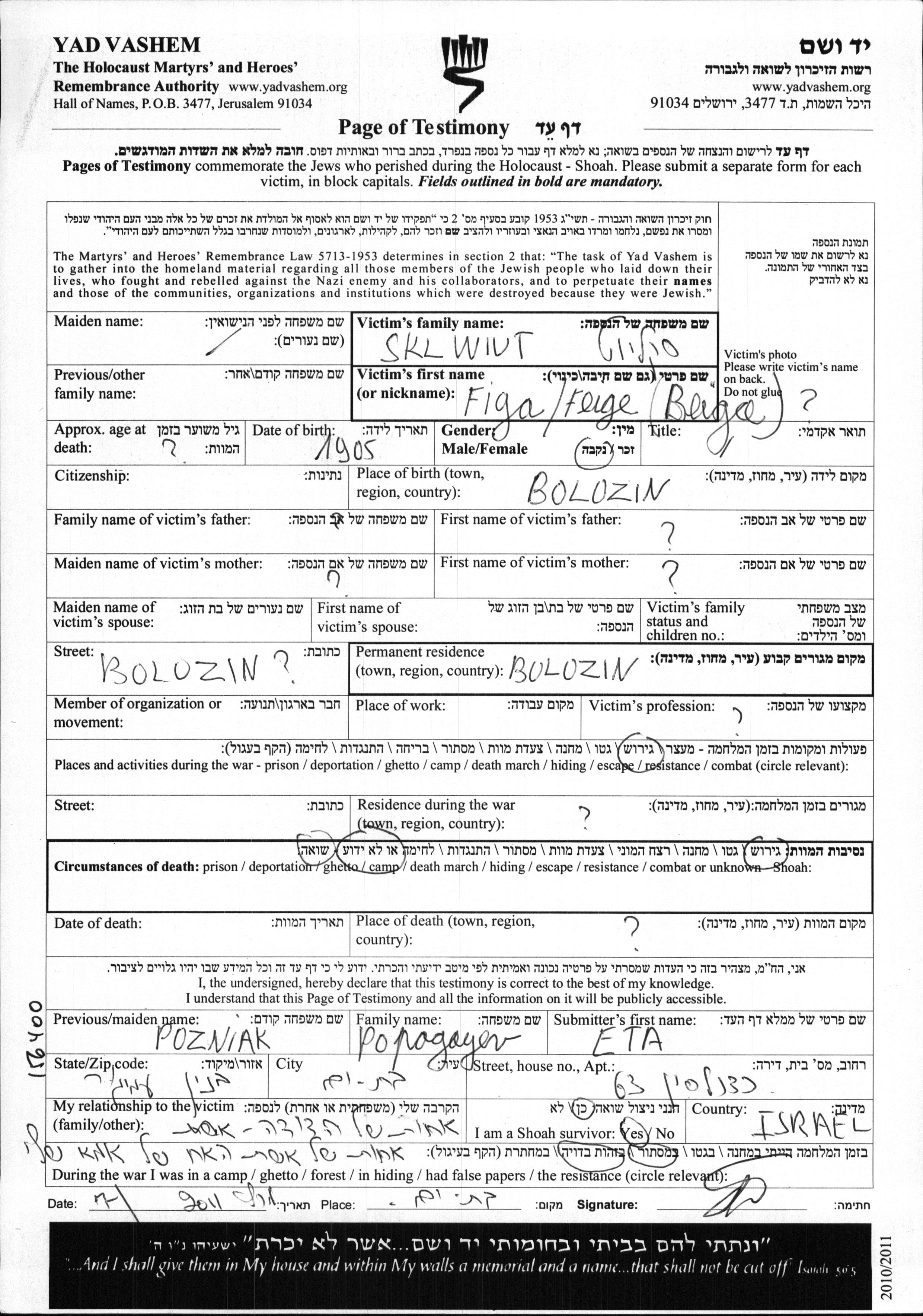 Yad Vashem - Pages of Testimony Names Memorial Collection