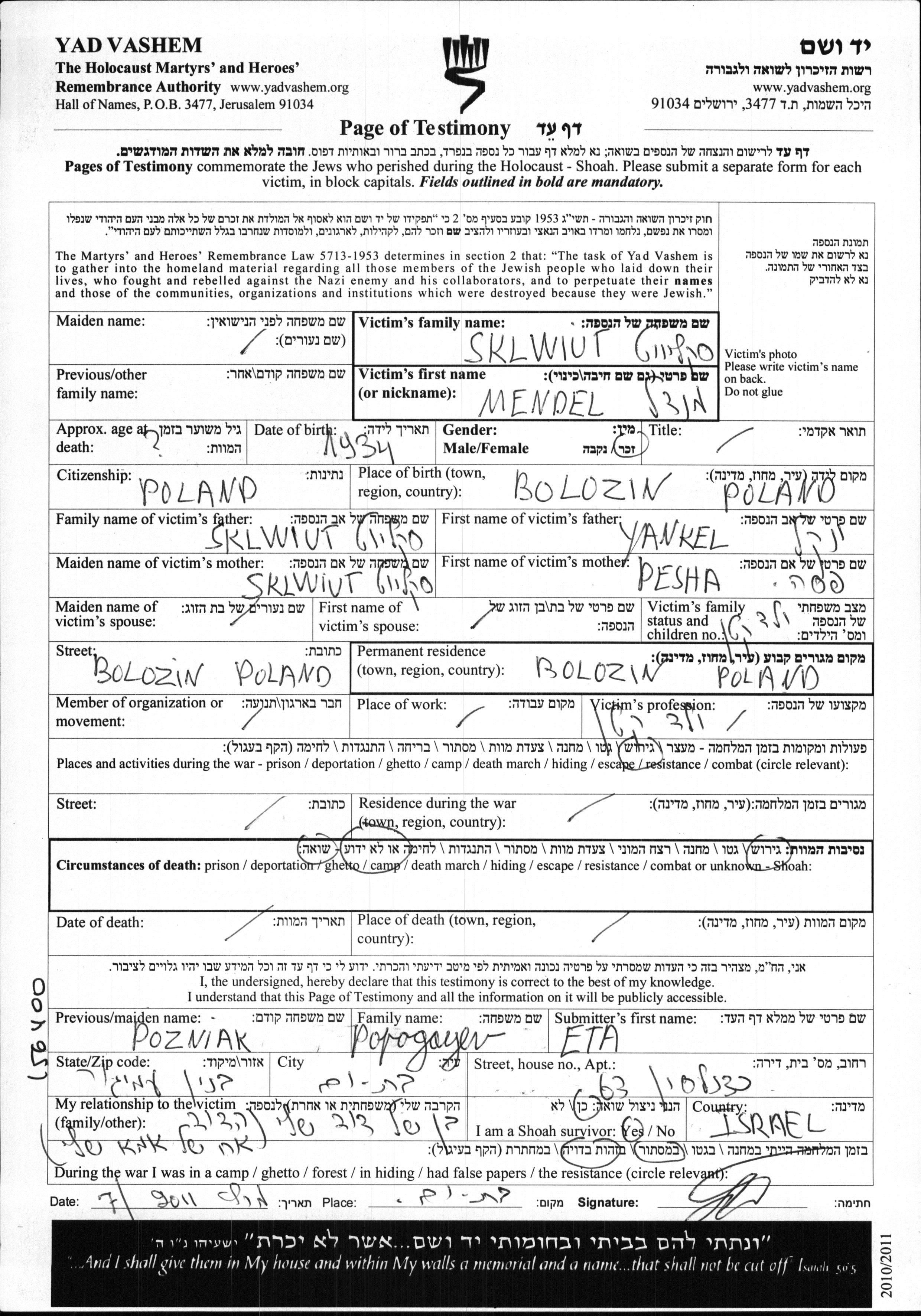 Yad Vashem - Pages of Testimony Names Memorial Collection
