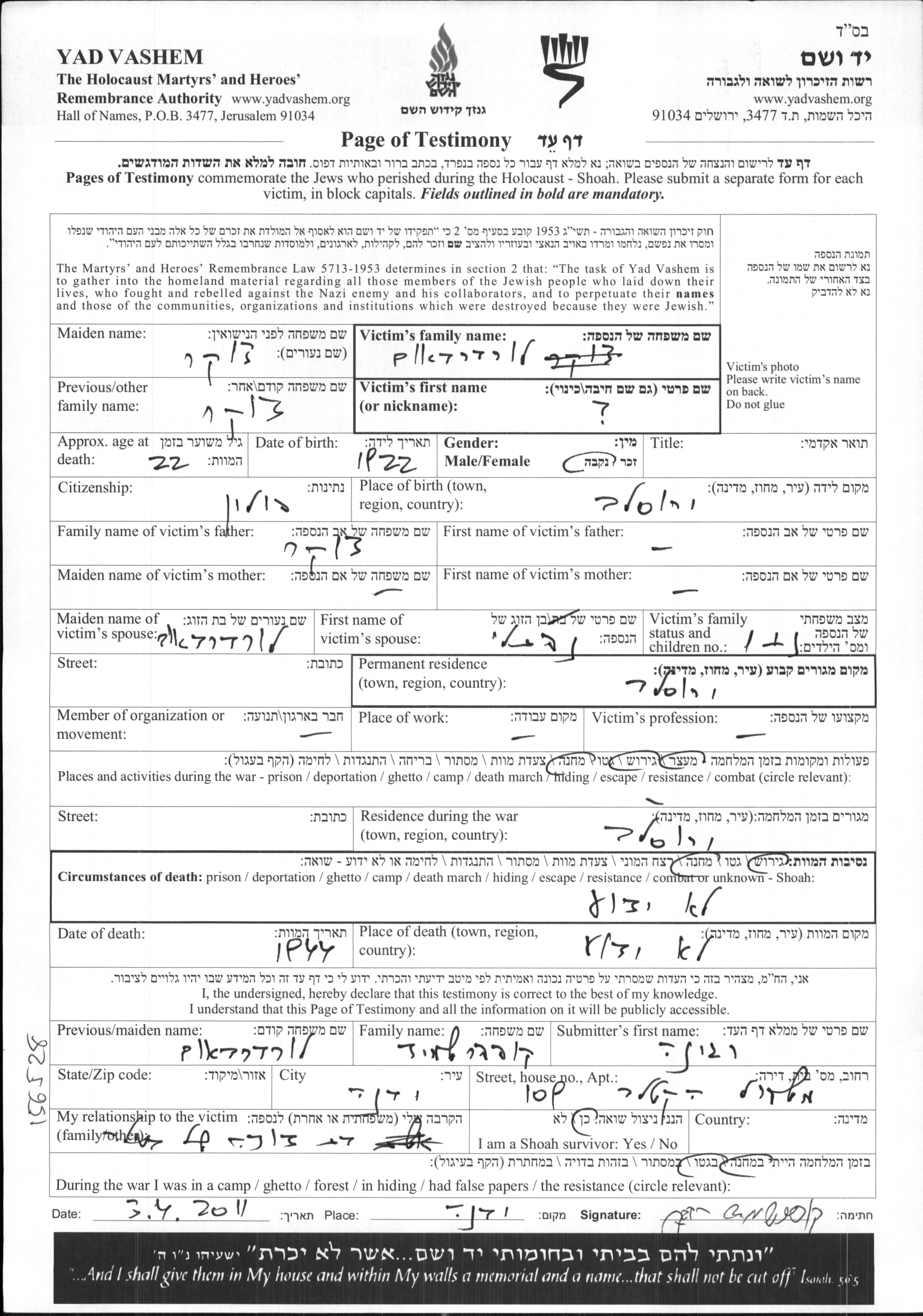 Yad Vashem - Pages of Testimony Names Memorial Collection