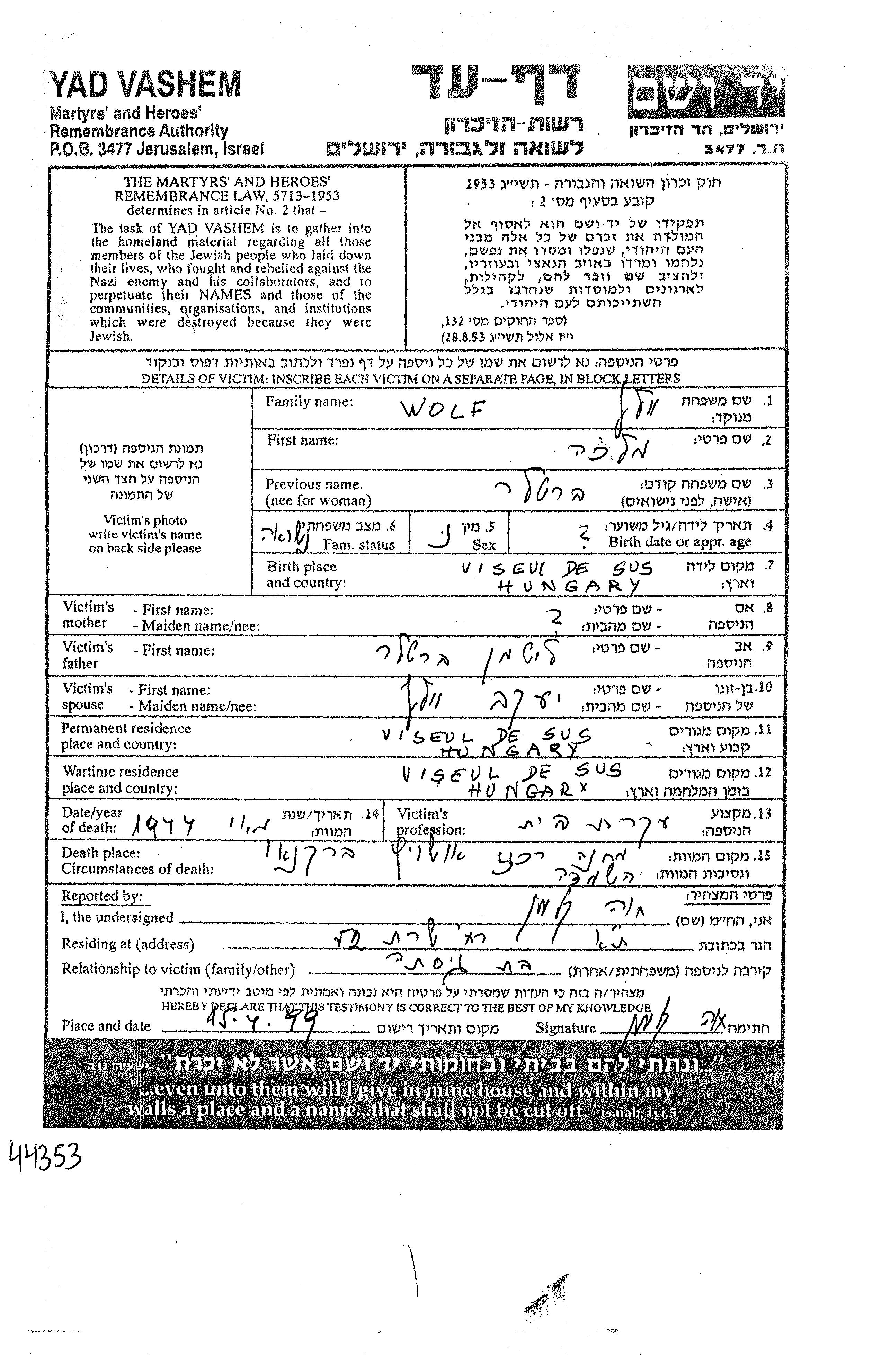 Yad Vashem - Pages of Testimony Names Memorial Collection