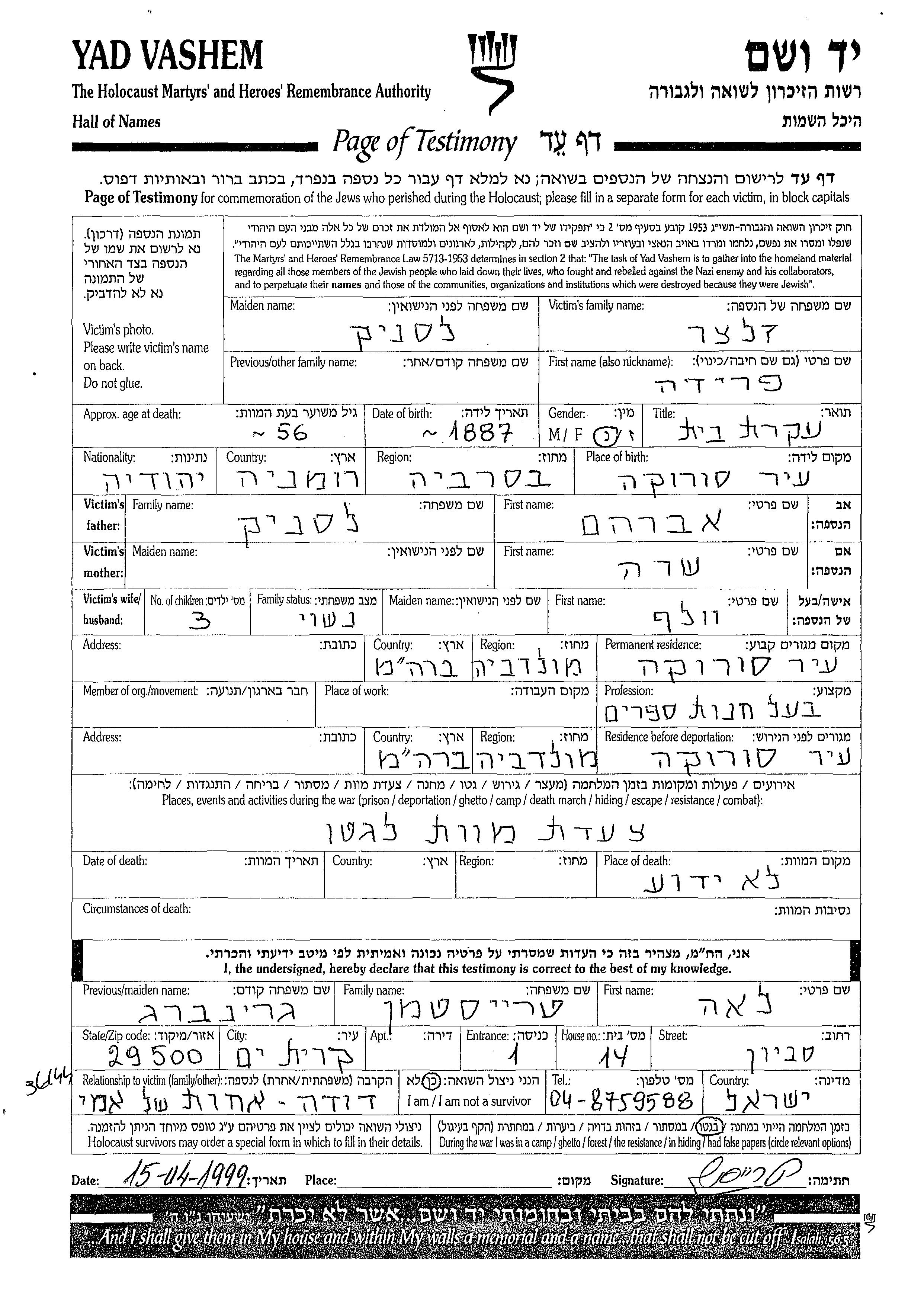 Yad Vashem - Pages of Testimony Names Memorial Collection