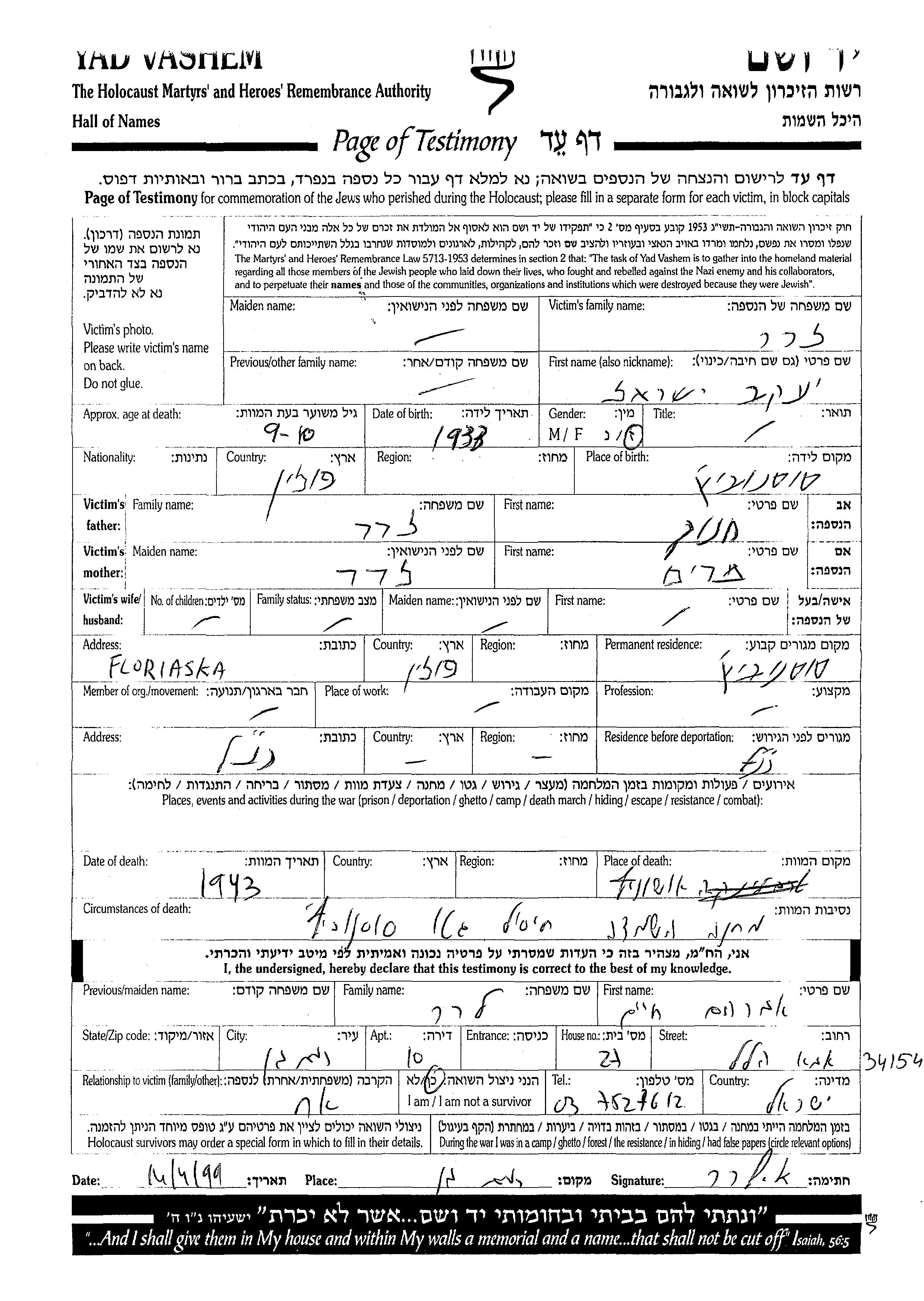 Yad Vashem - Pages of Testimony Names Memorial Collection