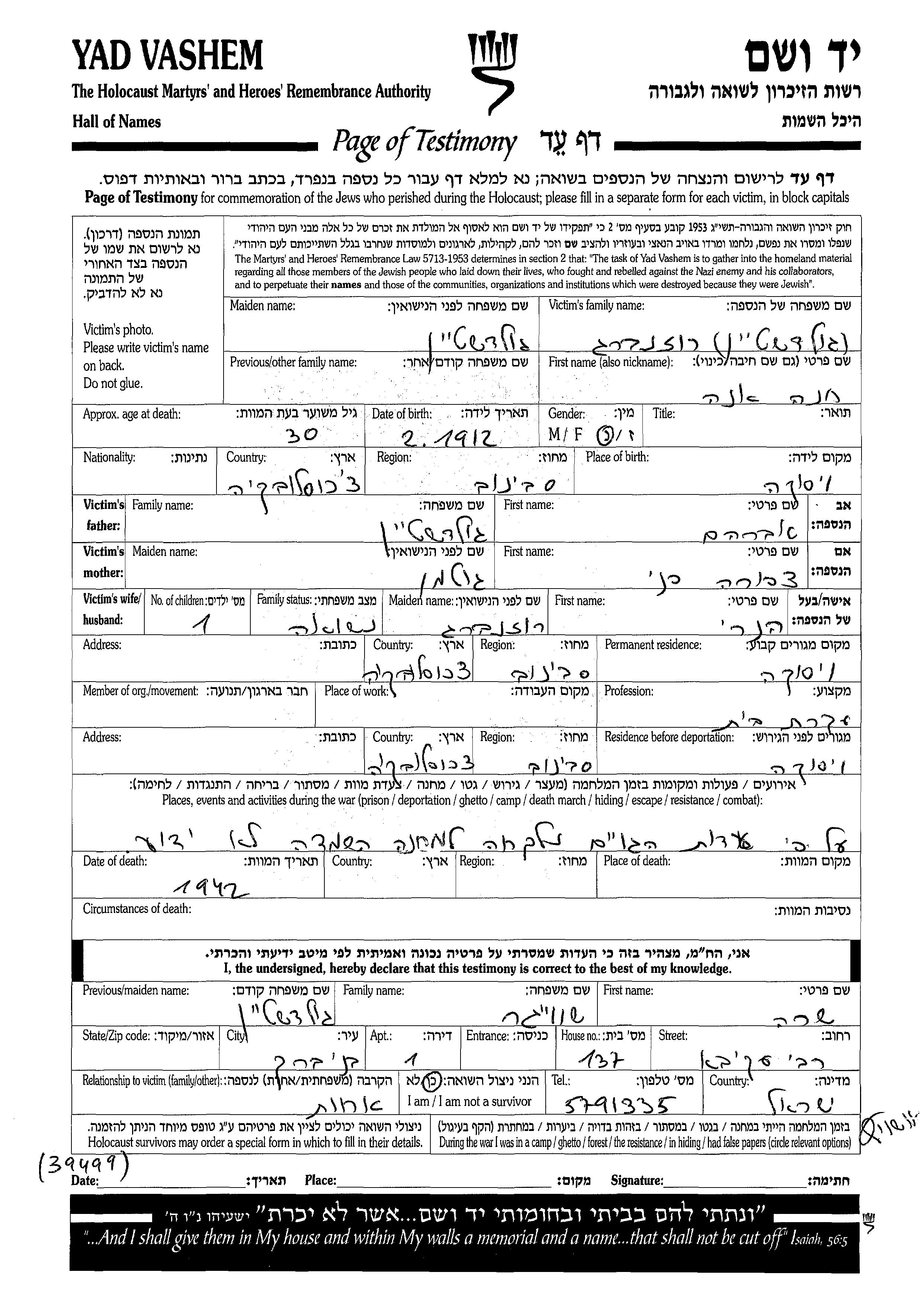 Yad Vashem - Pages of Testimony Names Memorial Collection