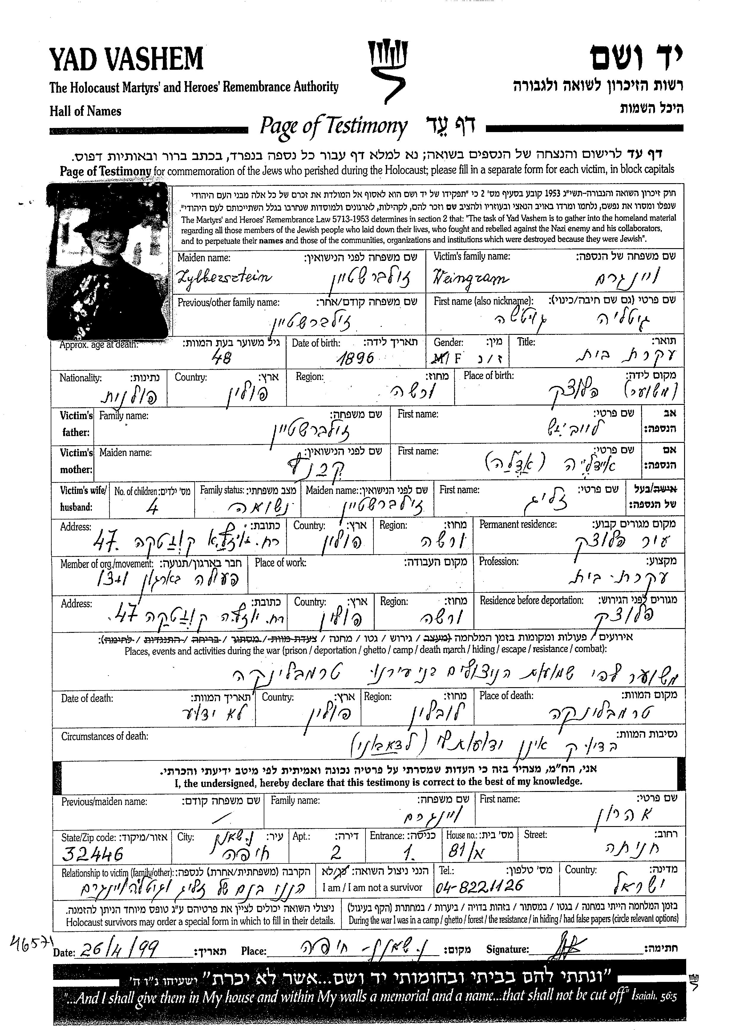 Yad Vashem - Pages of Testimony Names Memorial Collection