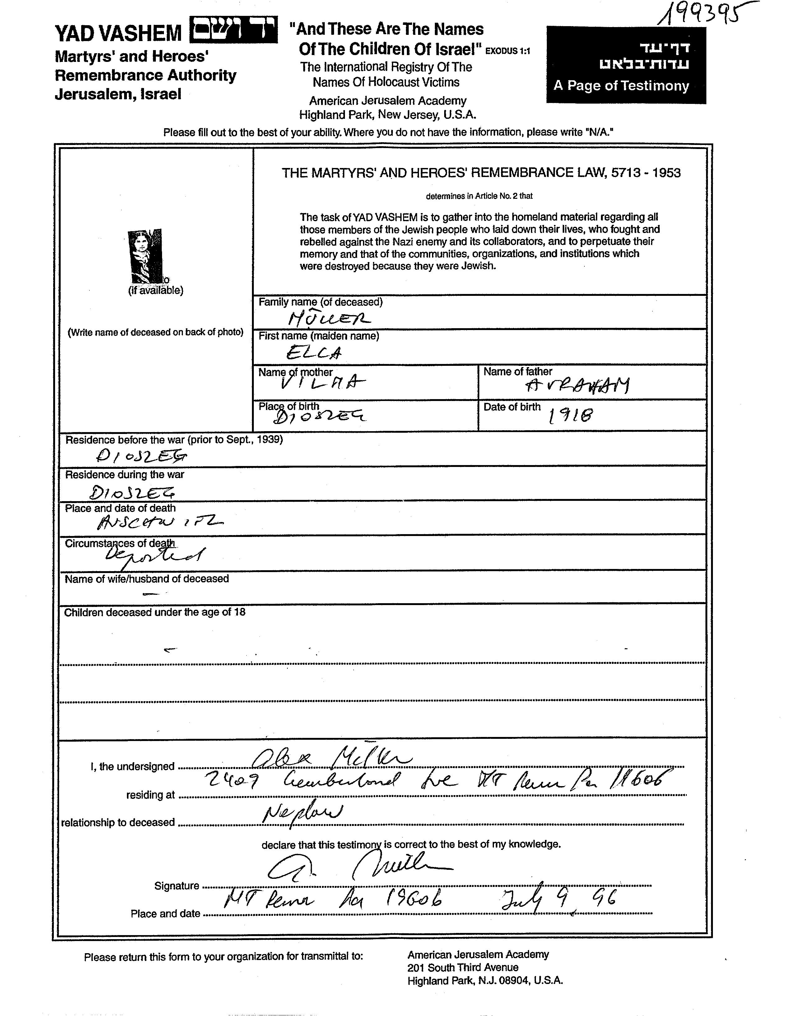 Yad Vashem - Pages of Testimony Names Memorial Collection