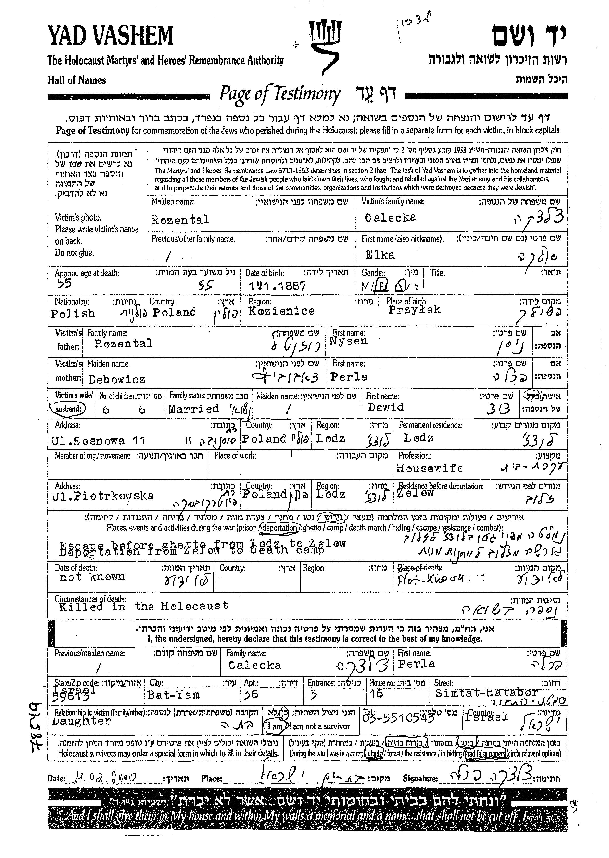 Yad Vashem - Pages of Testimony Names Memorial Collection