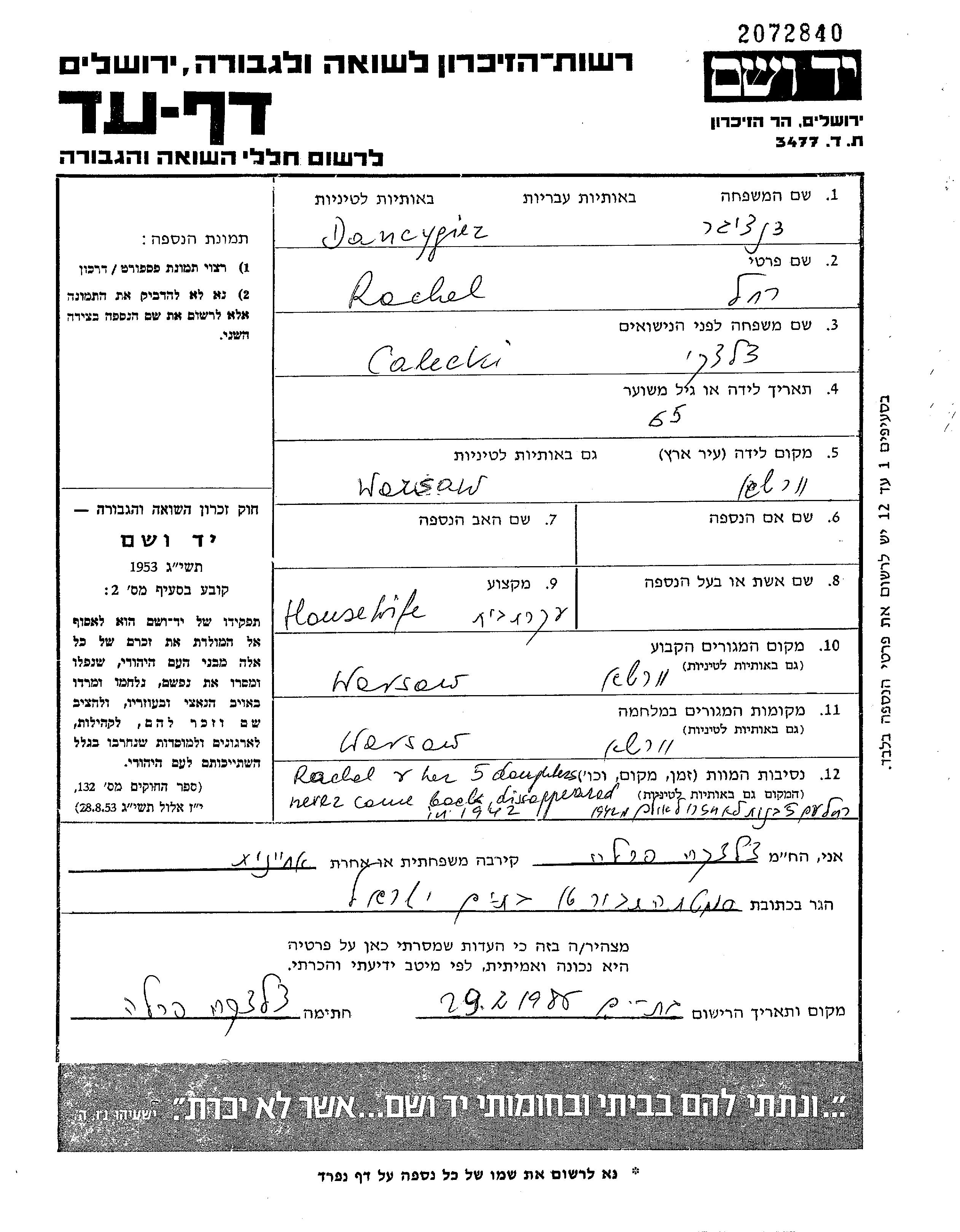 Recherche par nom du dépositeur de la Feuille de témoignage. Cette recherché indique aussi les noms de jeunes filles.