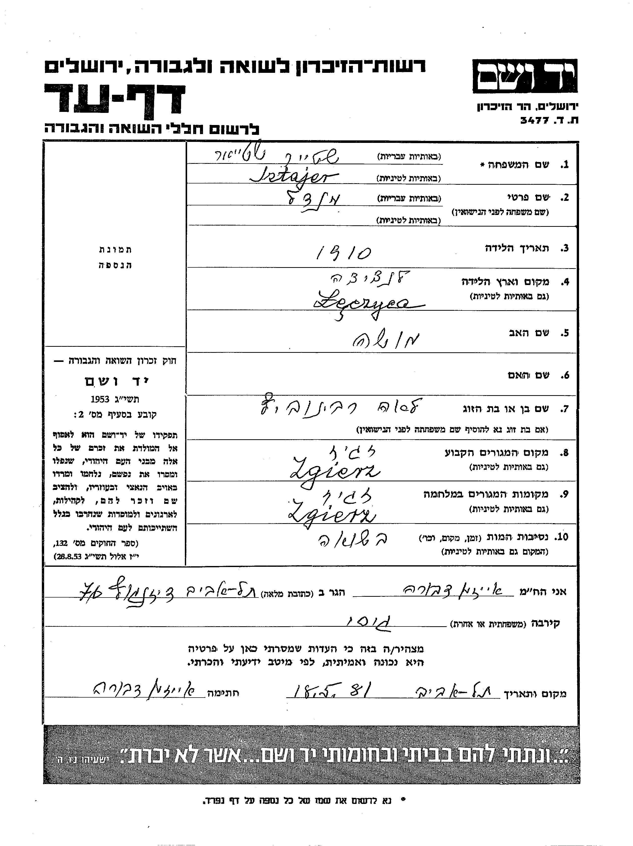 Yad Vashem - Pages of Testimony Names Memorial Collection