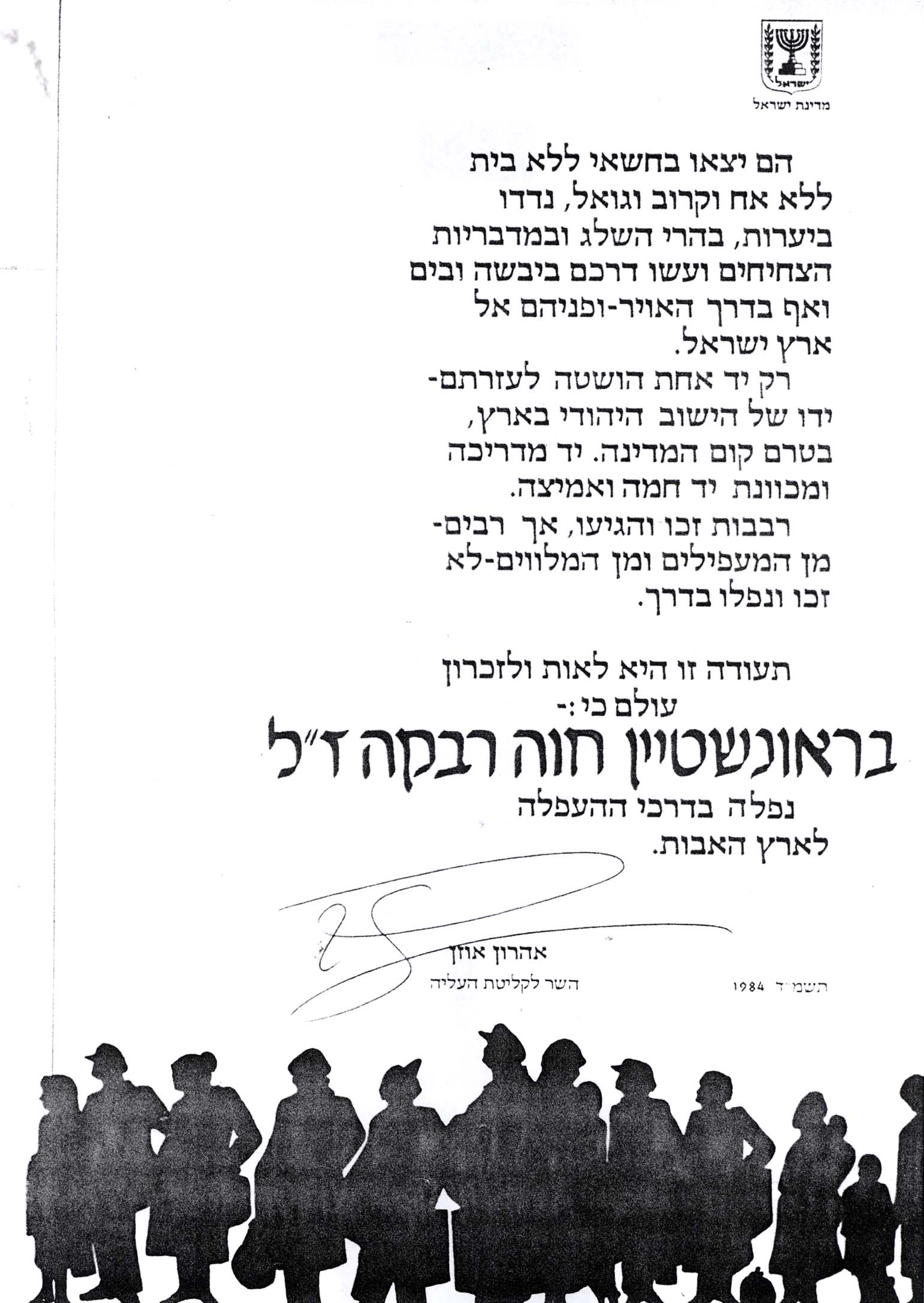 Braunshtein Chava Rebeca 1918 endroit inconnu, Feuille de témoignage