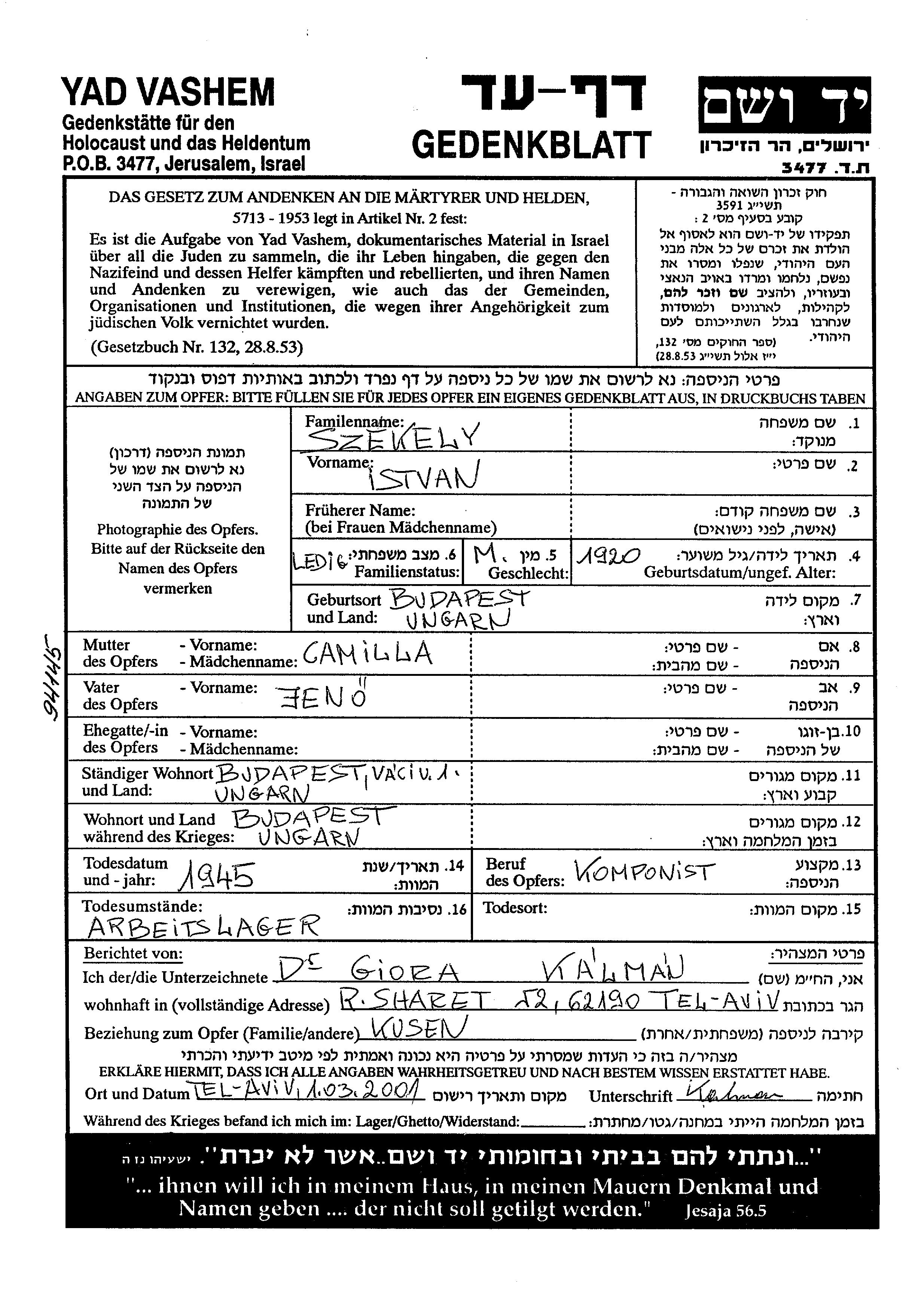 Recherche par date de la mort pendant la période de la Shoah: 1933-1945. Sélectionnez 'Exact'; dans la liste pour rechercher l'année exacte, ou sélectionner '+/- 2 ans'; ou '+/- 5 ans