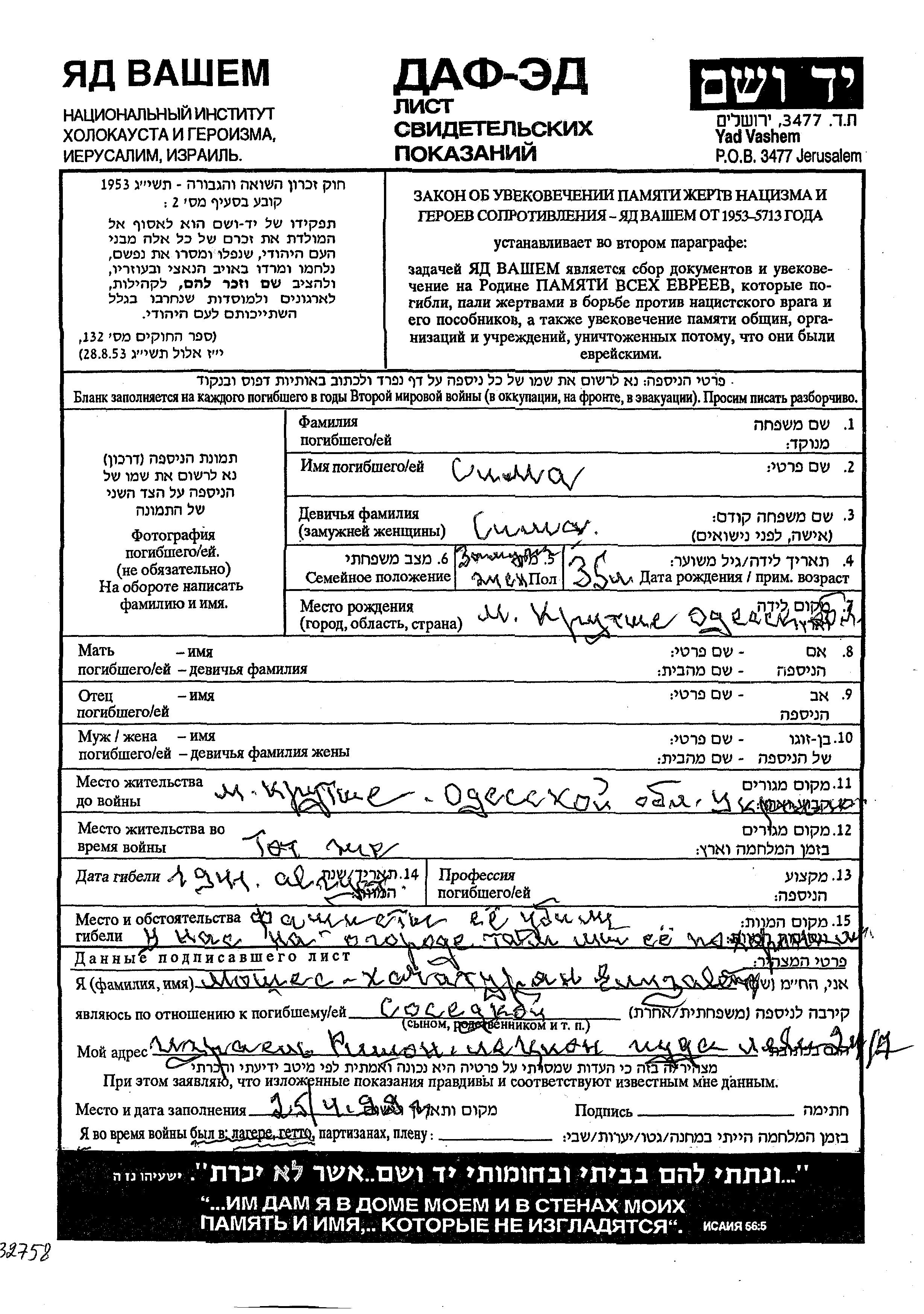 Yad Vashem - Pages of Testimony Names Memorial Collection