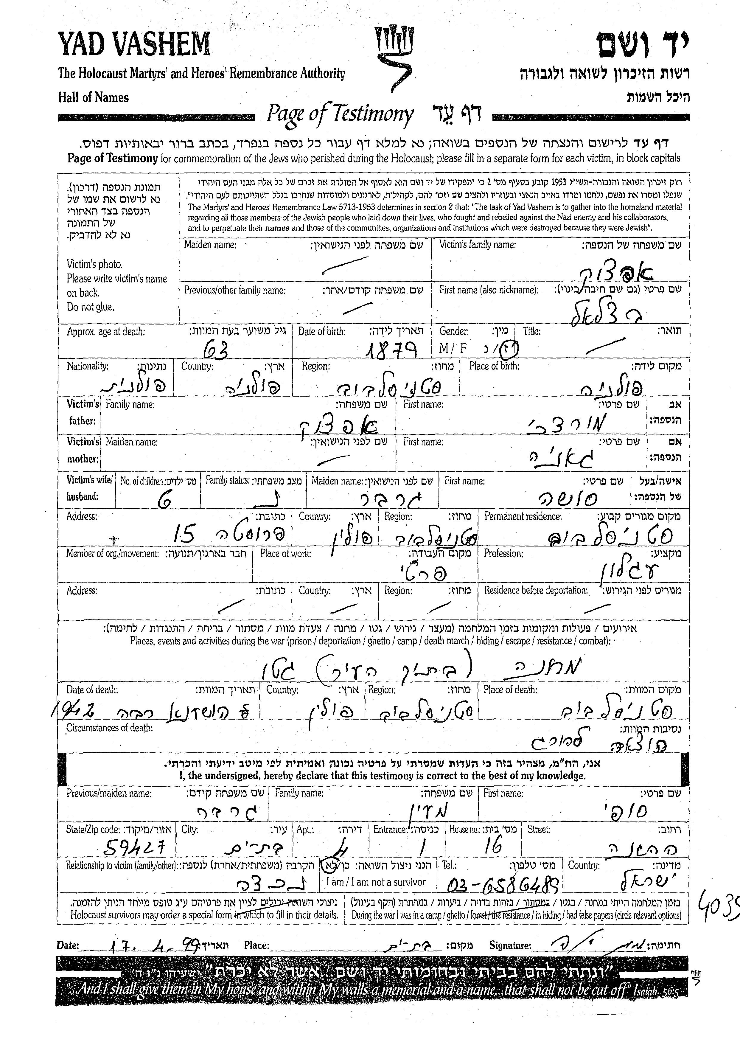 Recherche par date de la mort pendant la période de la Shoah: 1933-1945. Sélectionnez 'Exact'; dans la liste pour rechercher l'année exacte, ou sélectionner '+/- 2 ans'; ou '+/- 5 ans