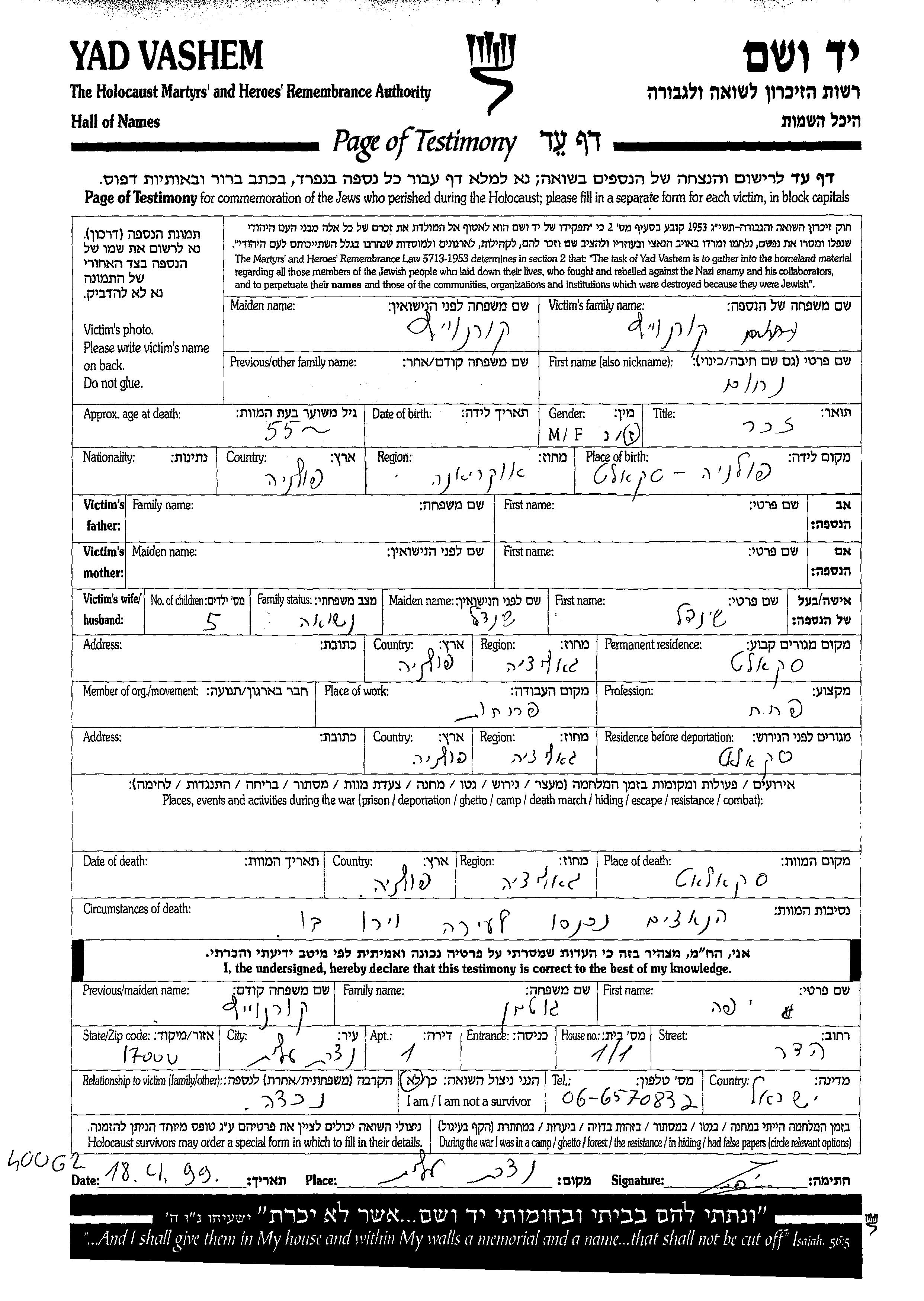 Yad Vashem - Pages of Testimony Names Memorial Collection