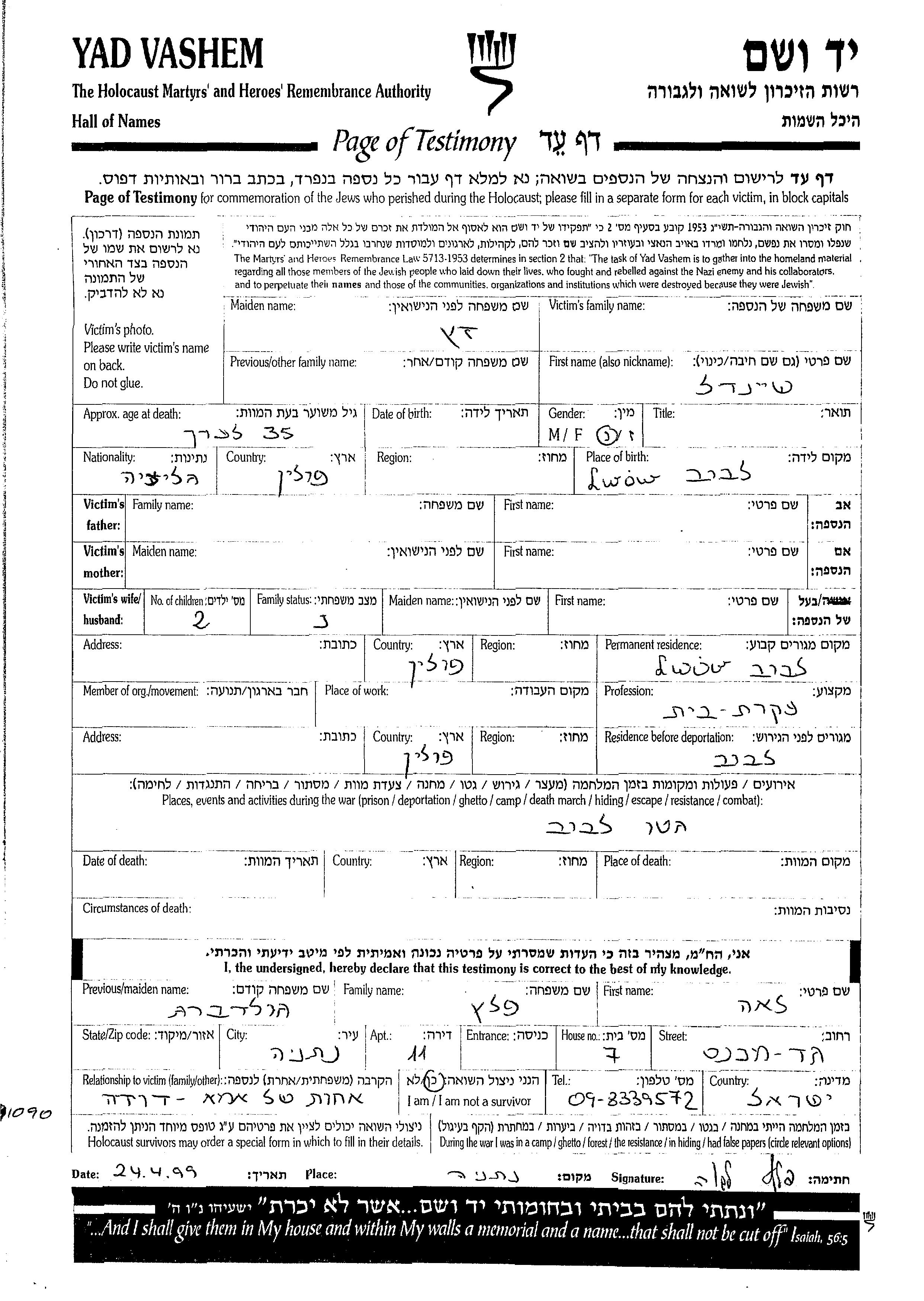 Yad Vashem - Pages of Testimony Names Memorial Collection