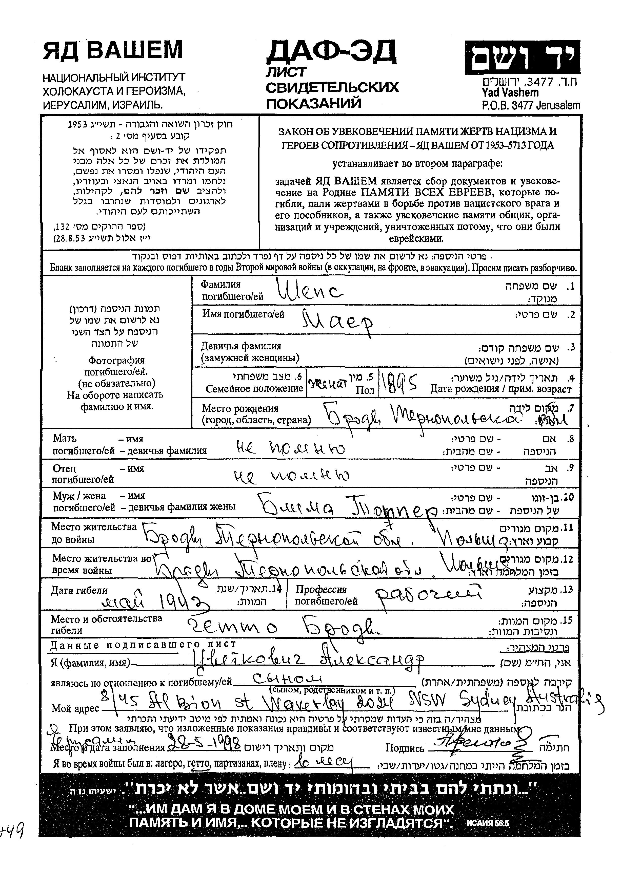 Yad Vashem - Pages of Testimony Names Memorial Collection