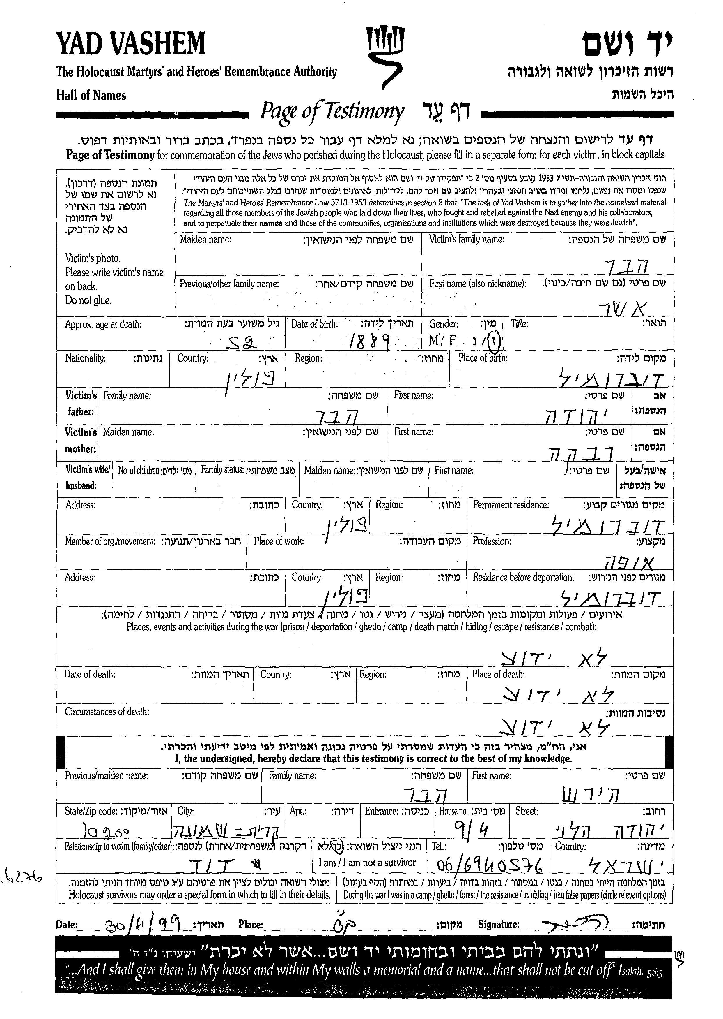 Yad Vashem - Pages of Testimony Names Memorial Collection
