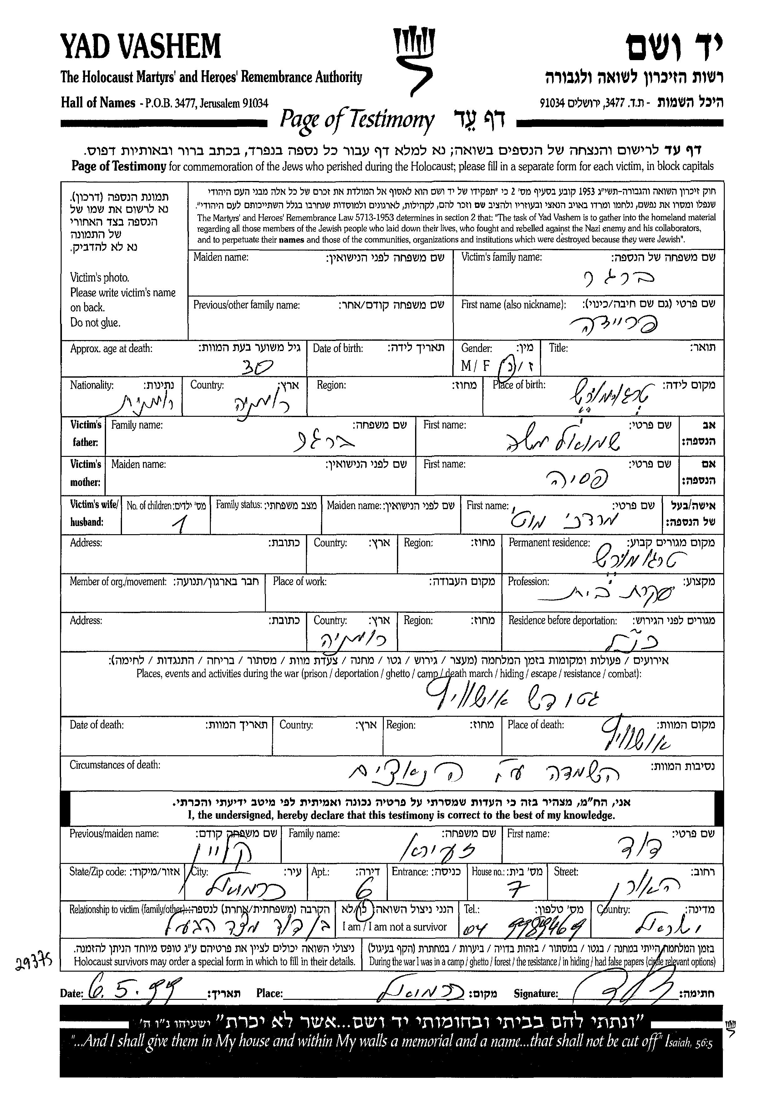 Yad Vashem - Pages of Testimony Names Memorial Collection