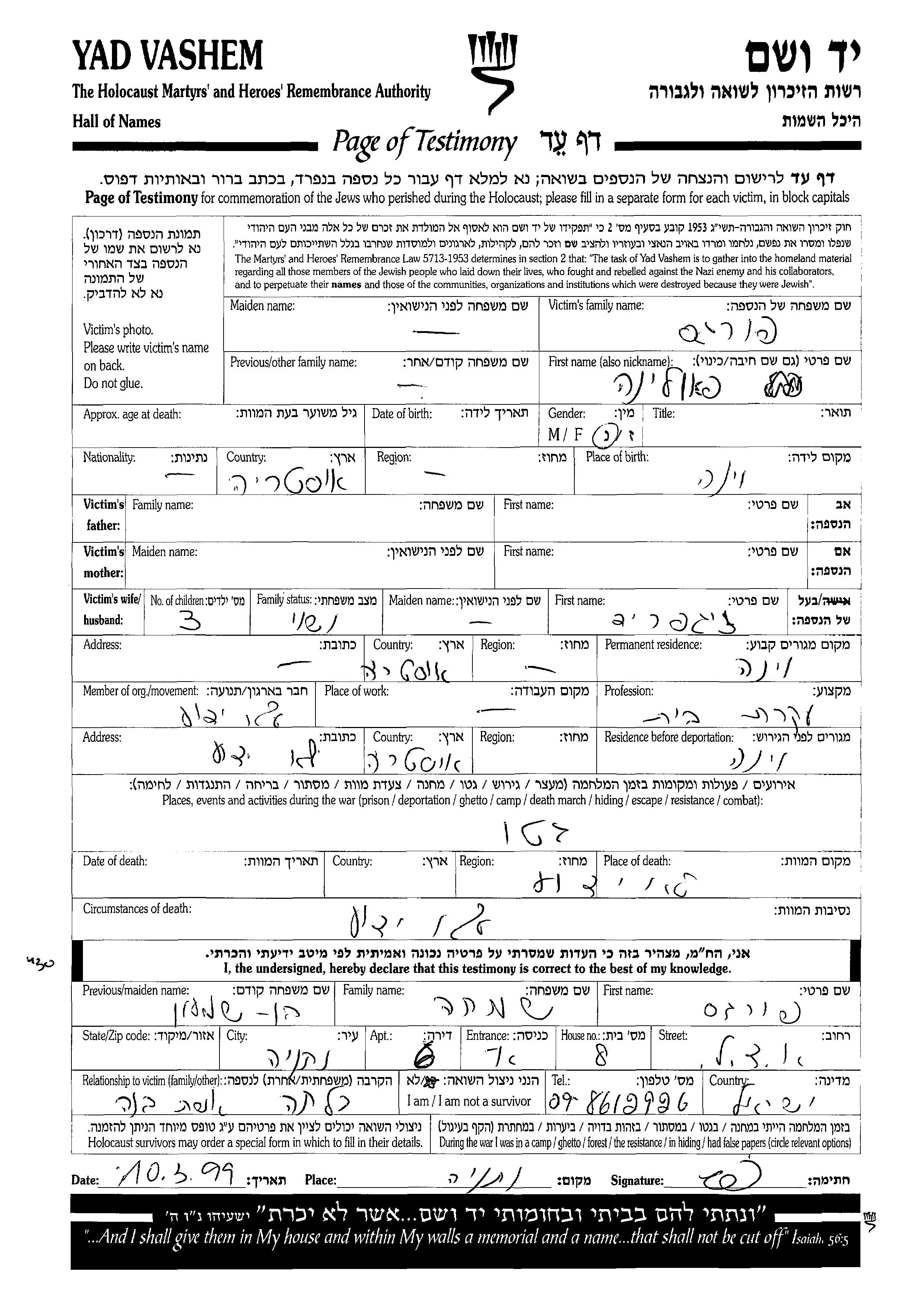 Yad Vashem - Pages of Testimony Names Memorial Collection