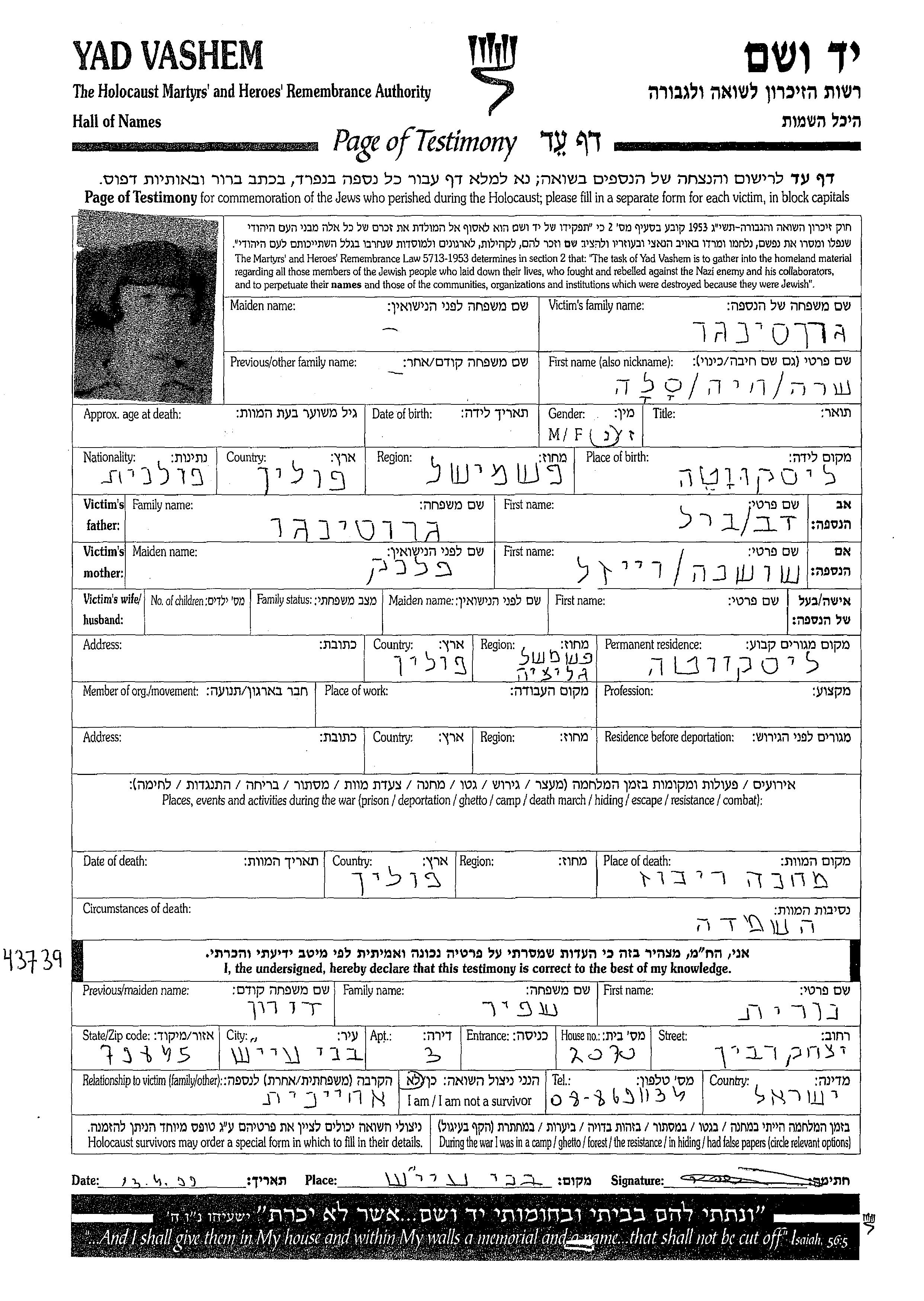 Yad Vashem - Pages of Testimony Names Memorial Collection