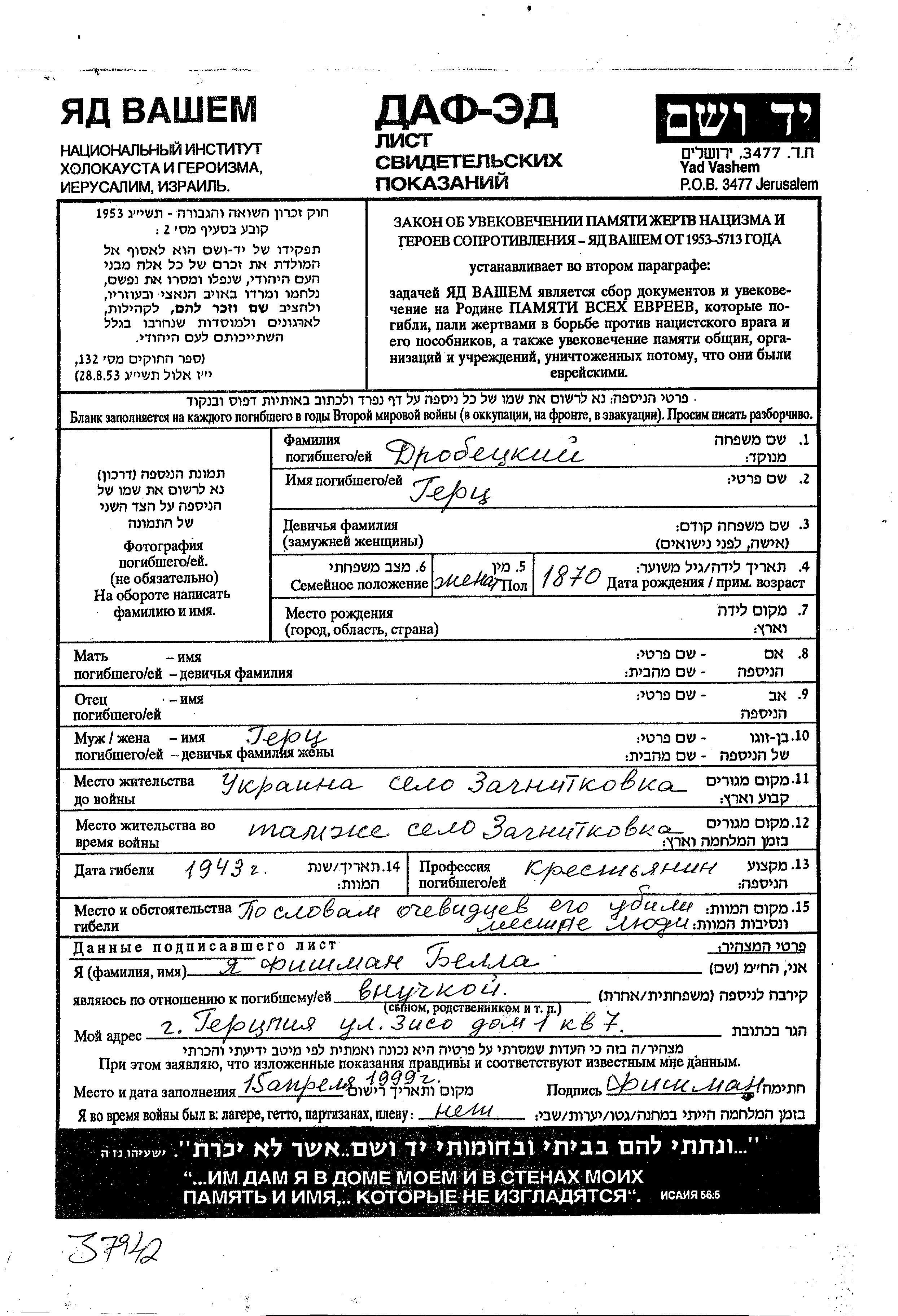 Yad Vashem - Pages of Testimony Names Memorial Collection