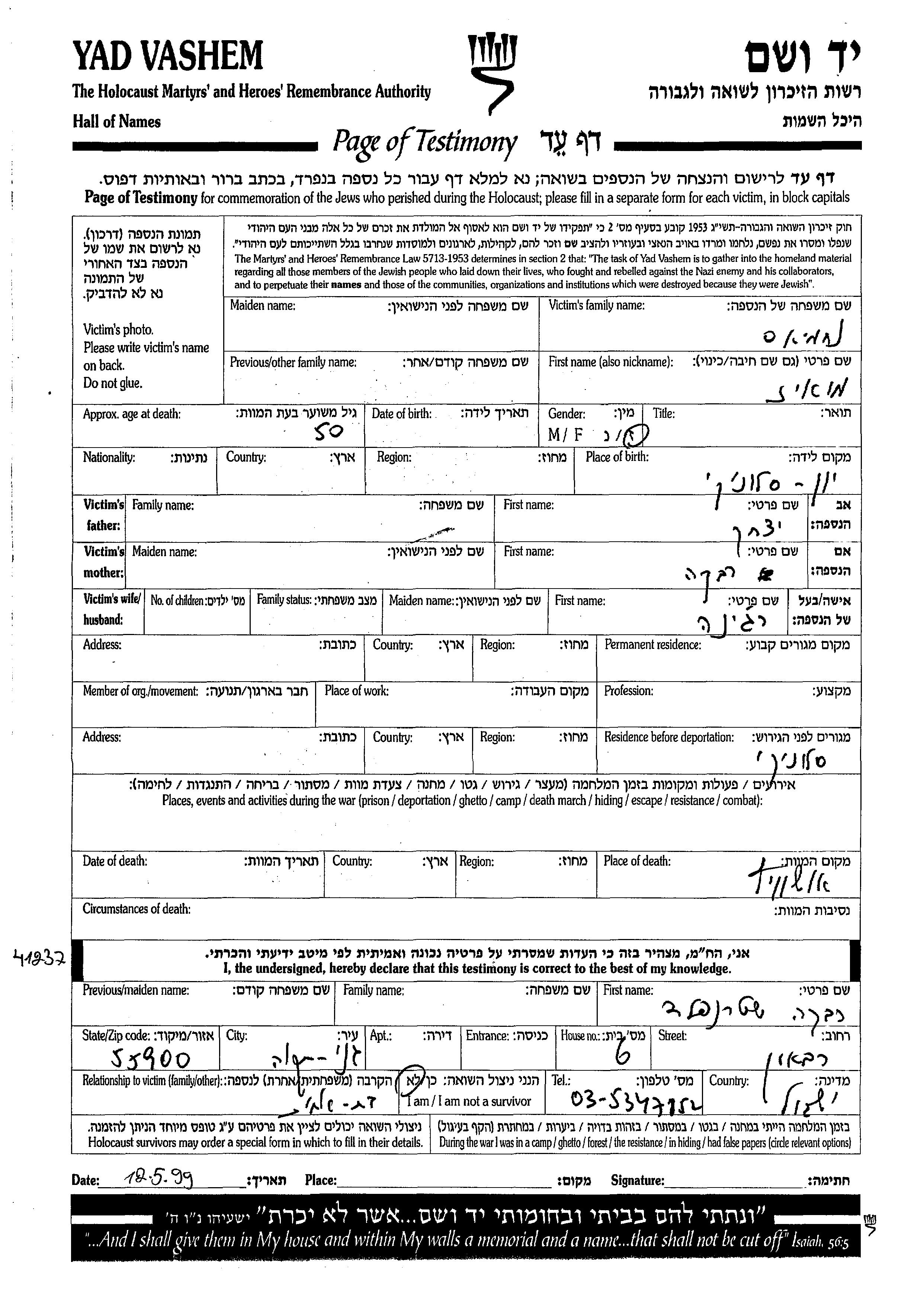 Yad Vashem - Pages of Testimony Names Memorial Collection