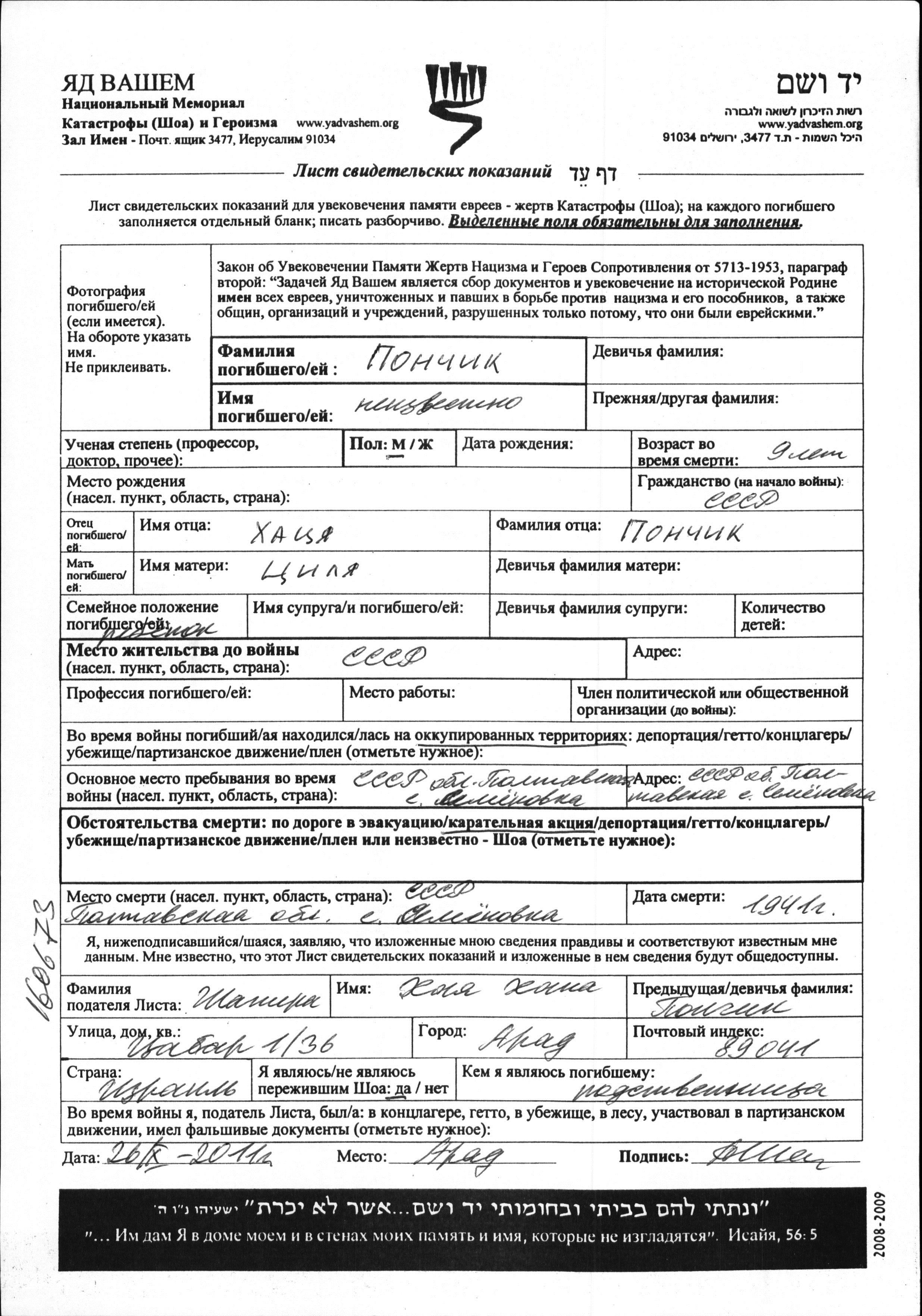 Yad Vashem - Pages of Testimony Names Memorial Collection