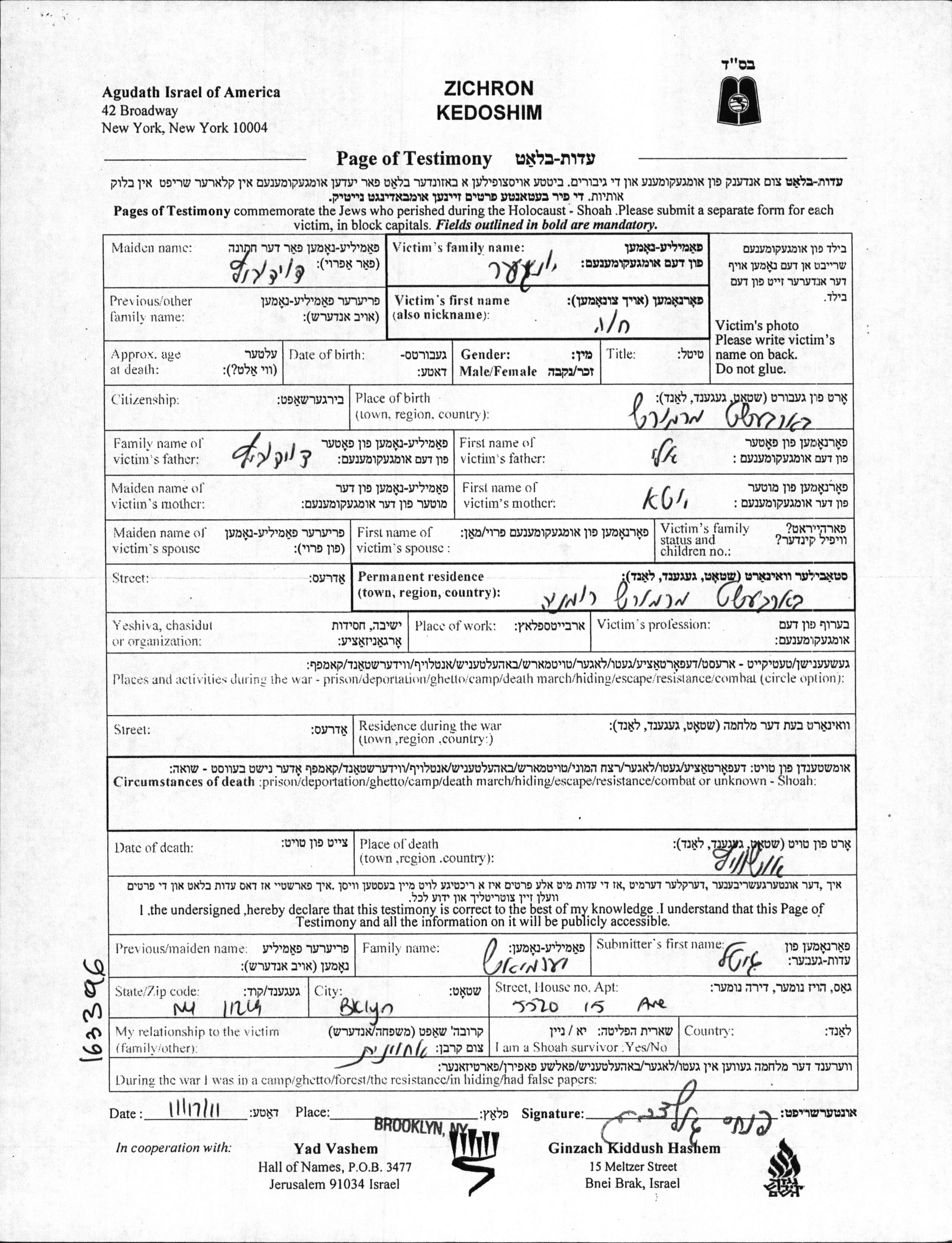 Yad Vashem - Pages of Testimony Names Memorial Collection