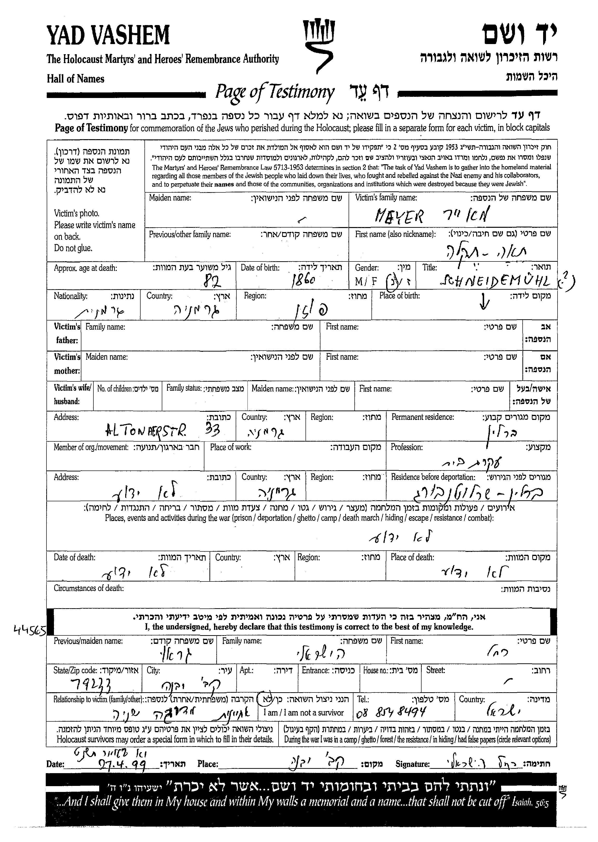 Yad Vashem - Pages of Testimony Names Memorial Collection