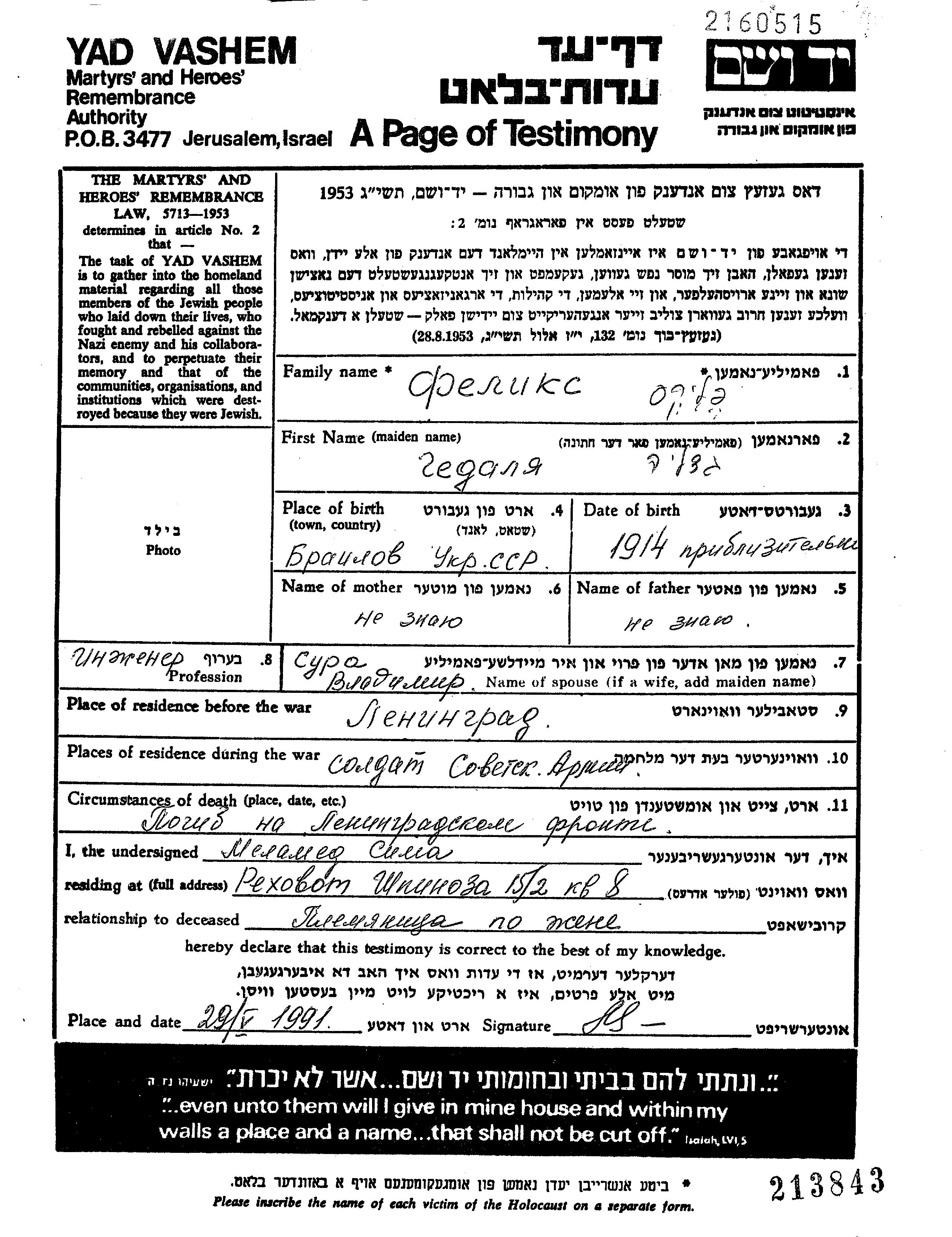 Recherche par nom du dépositeur de la Feuille de témoignage. Cette recherché indique aussi les noms de jeunes filles.