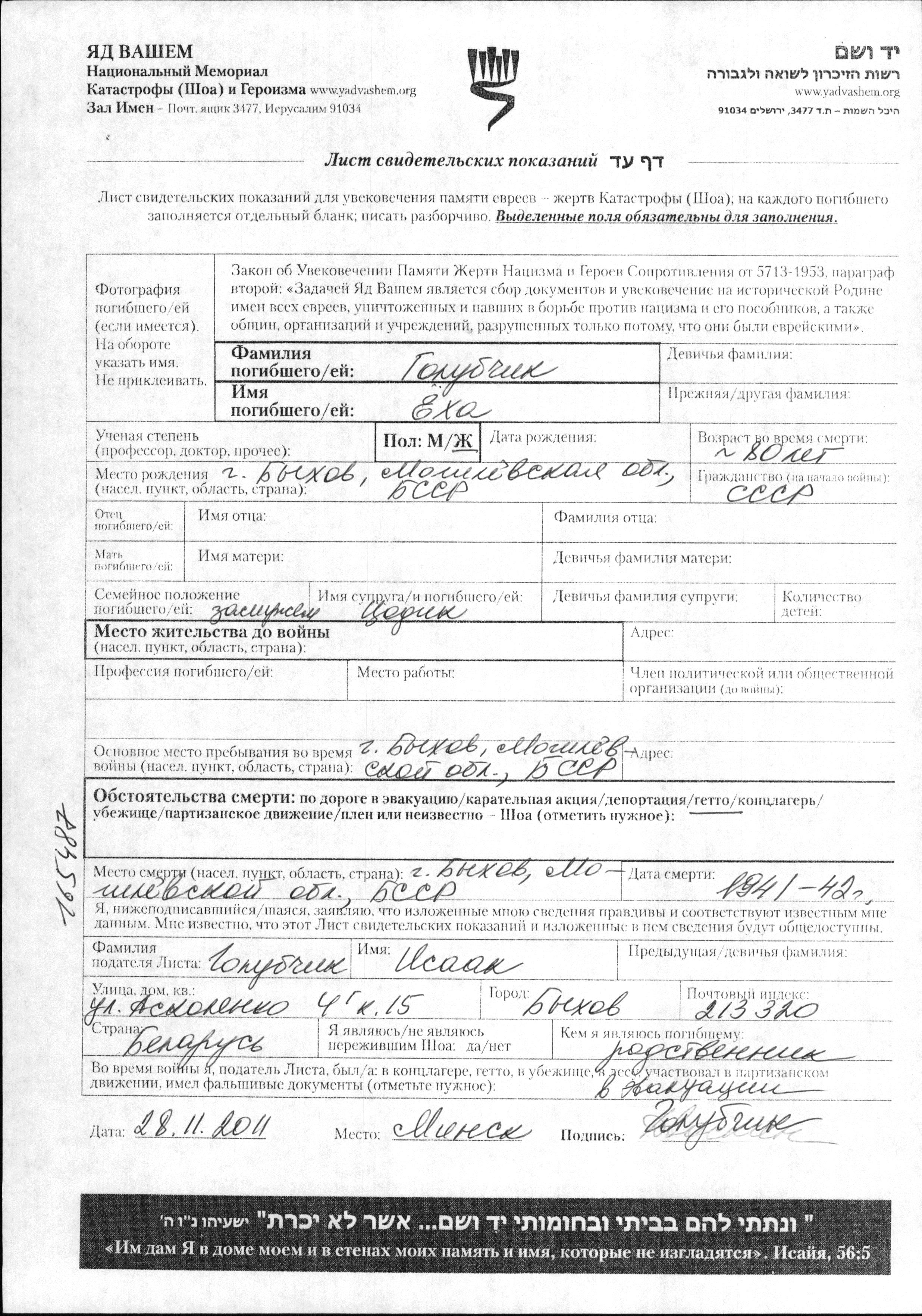 Yokha a été assassinée pendant la Shoah. Lieu de la mort: Bykhov, Bélorussie (URSS) en 1941.