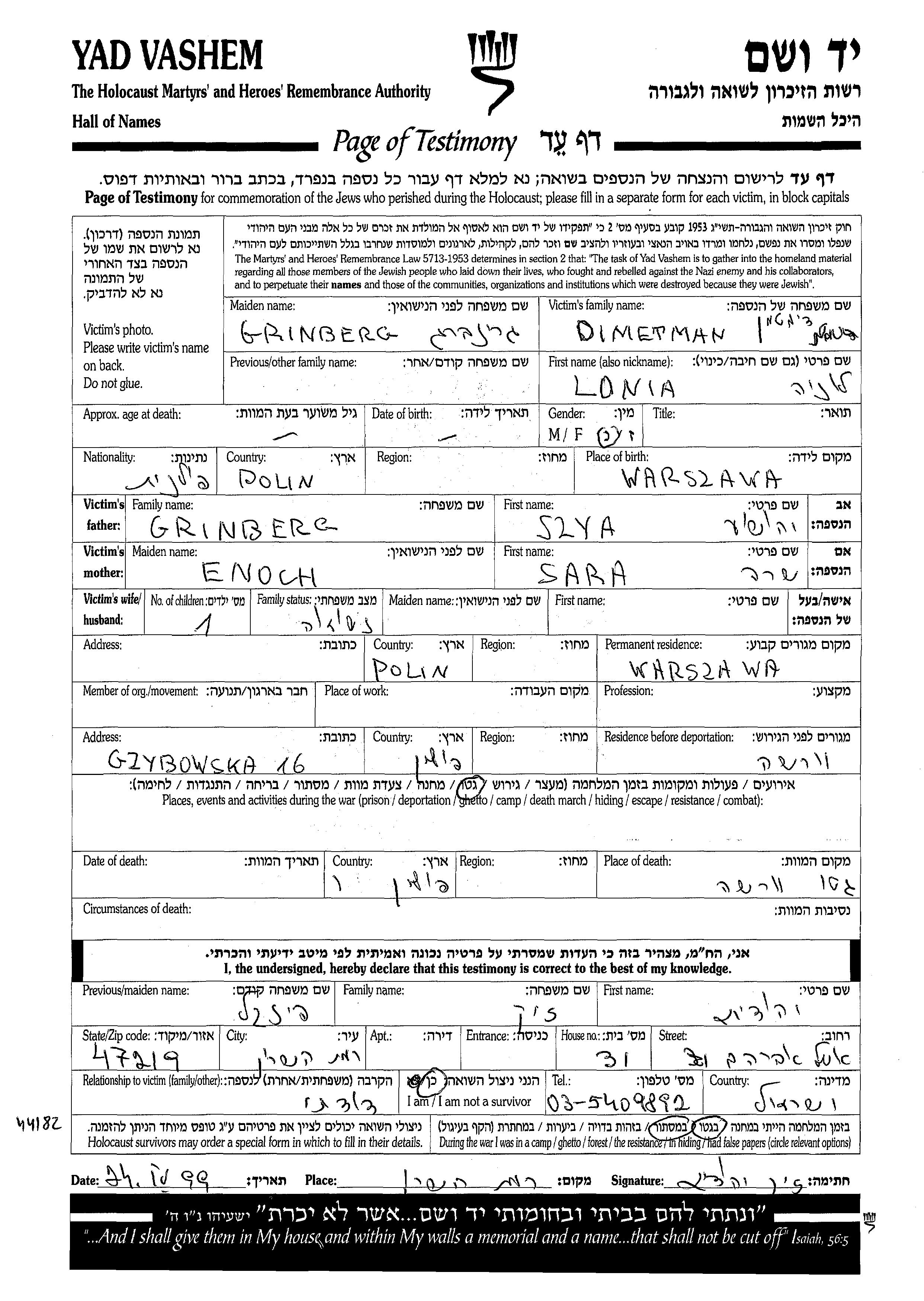 Yad Vashem - Pages of Testimony Names Memorial Collection