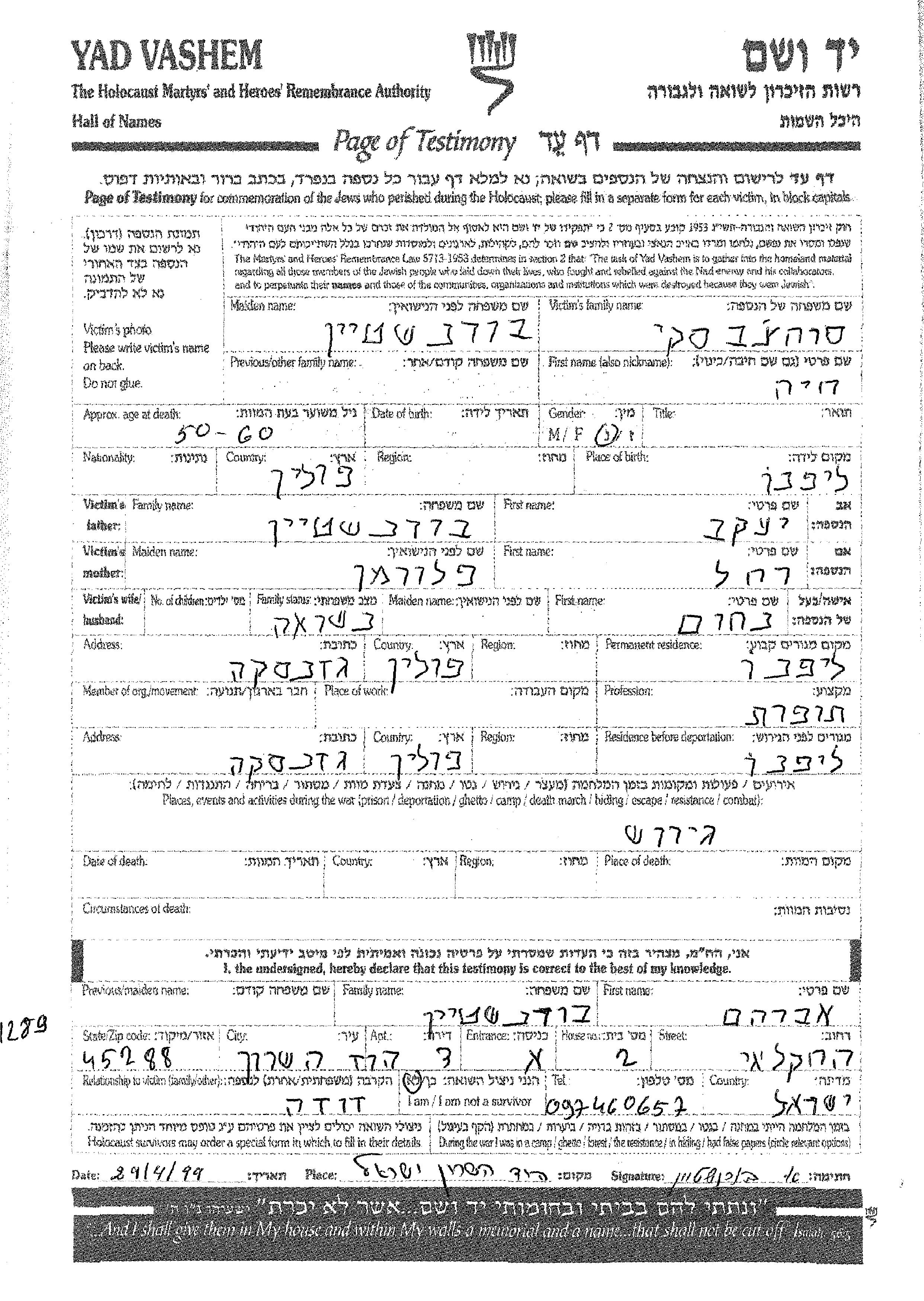 Yad Vashem - Pages of Testimony Names Memorial Collection