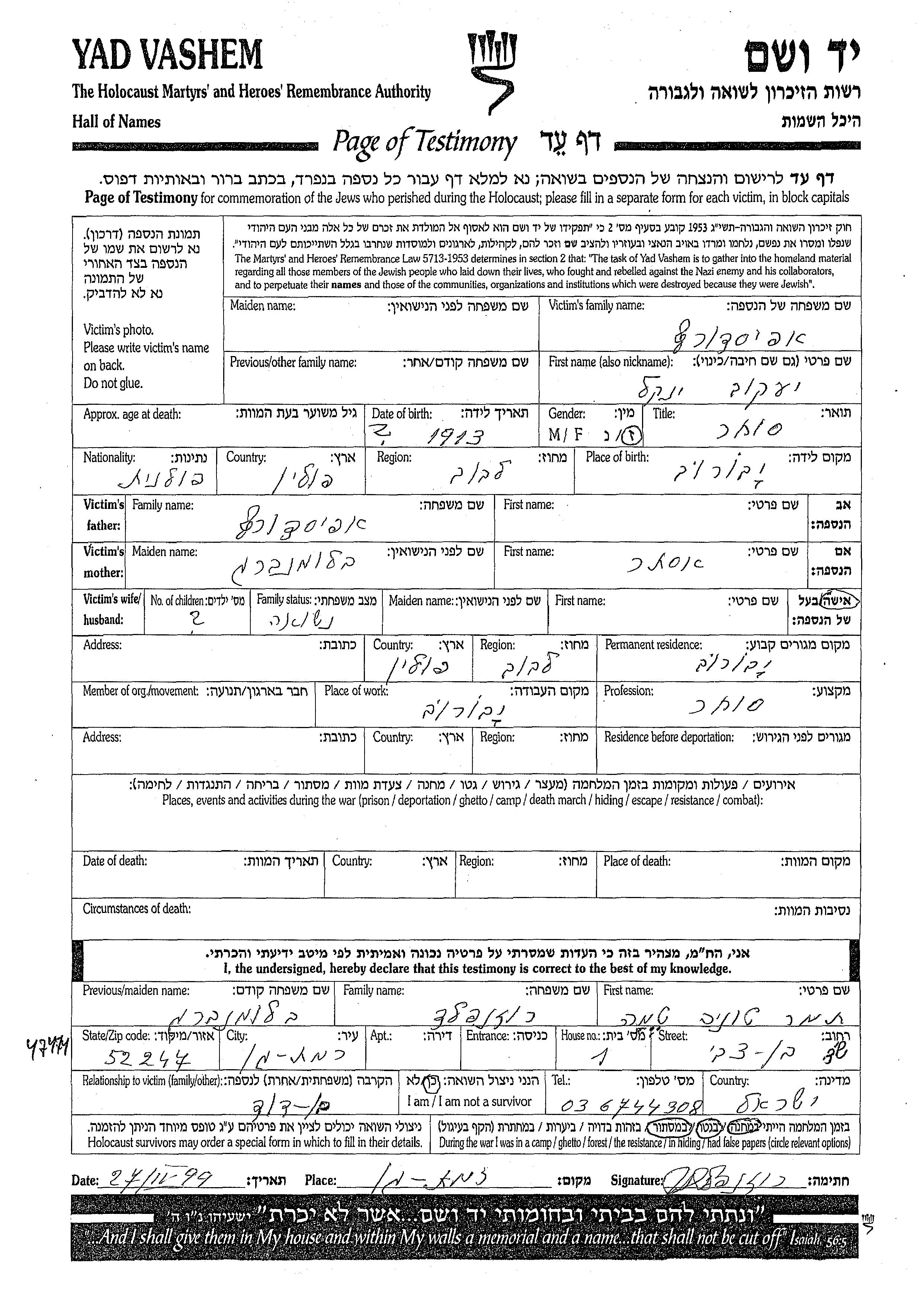 Yad Vashem - Pages of Testimony Names Memorial Collection