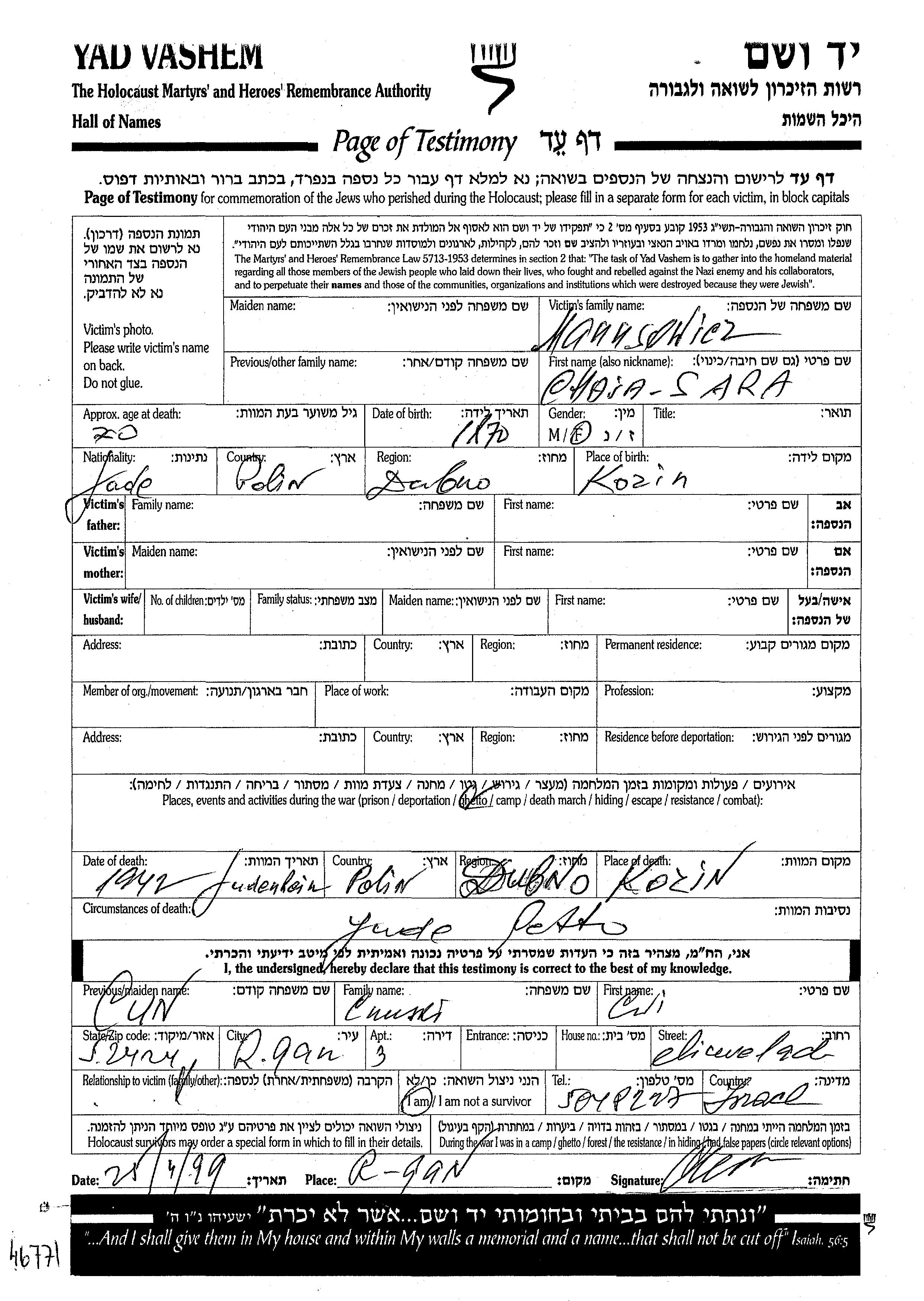 Yad Vashem - Pages of Testimony Names Memorial Collection