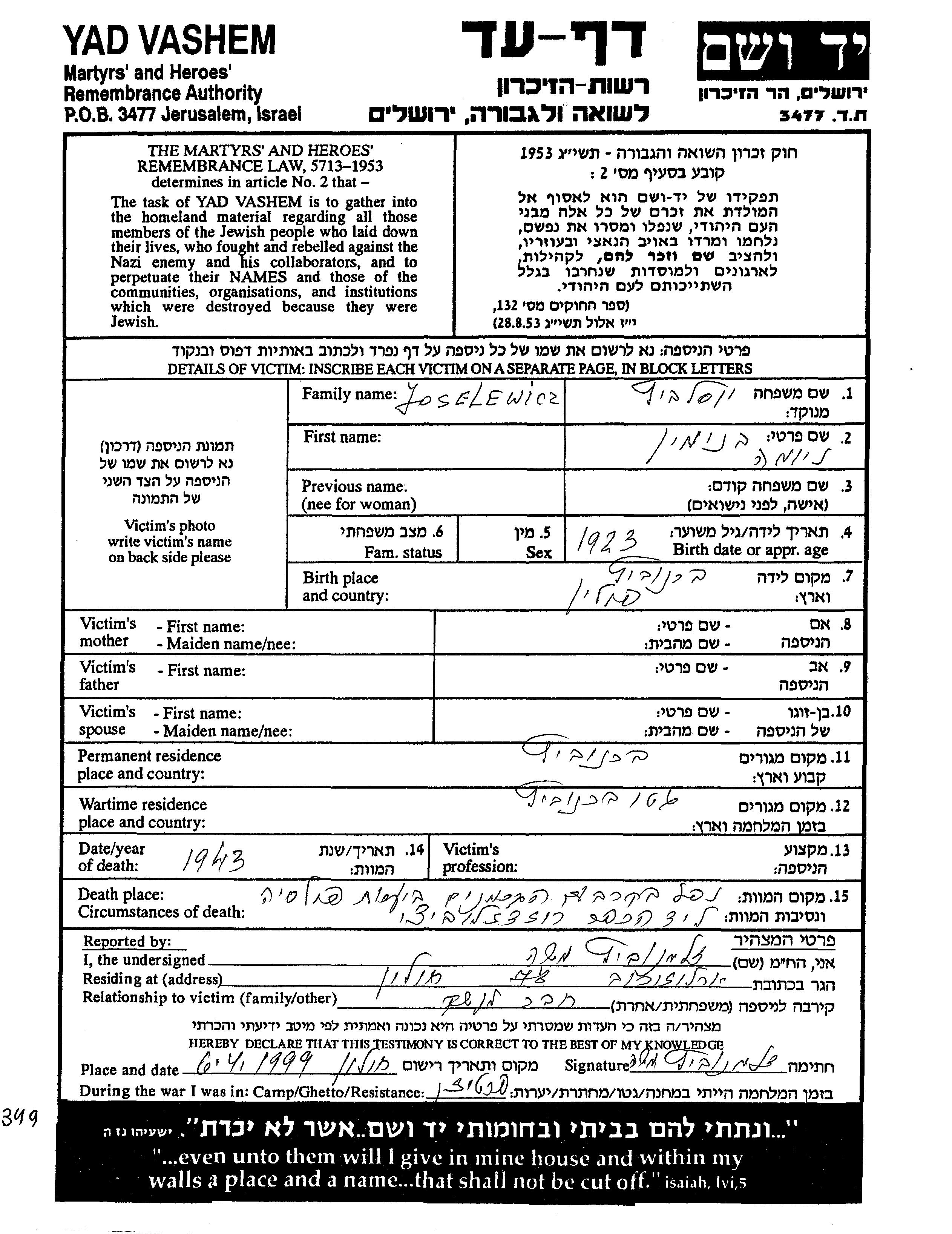 Yad Vashem - Pages of Testimony Names Memorial Collection