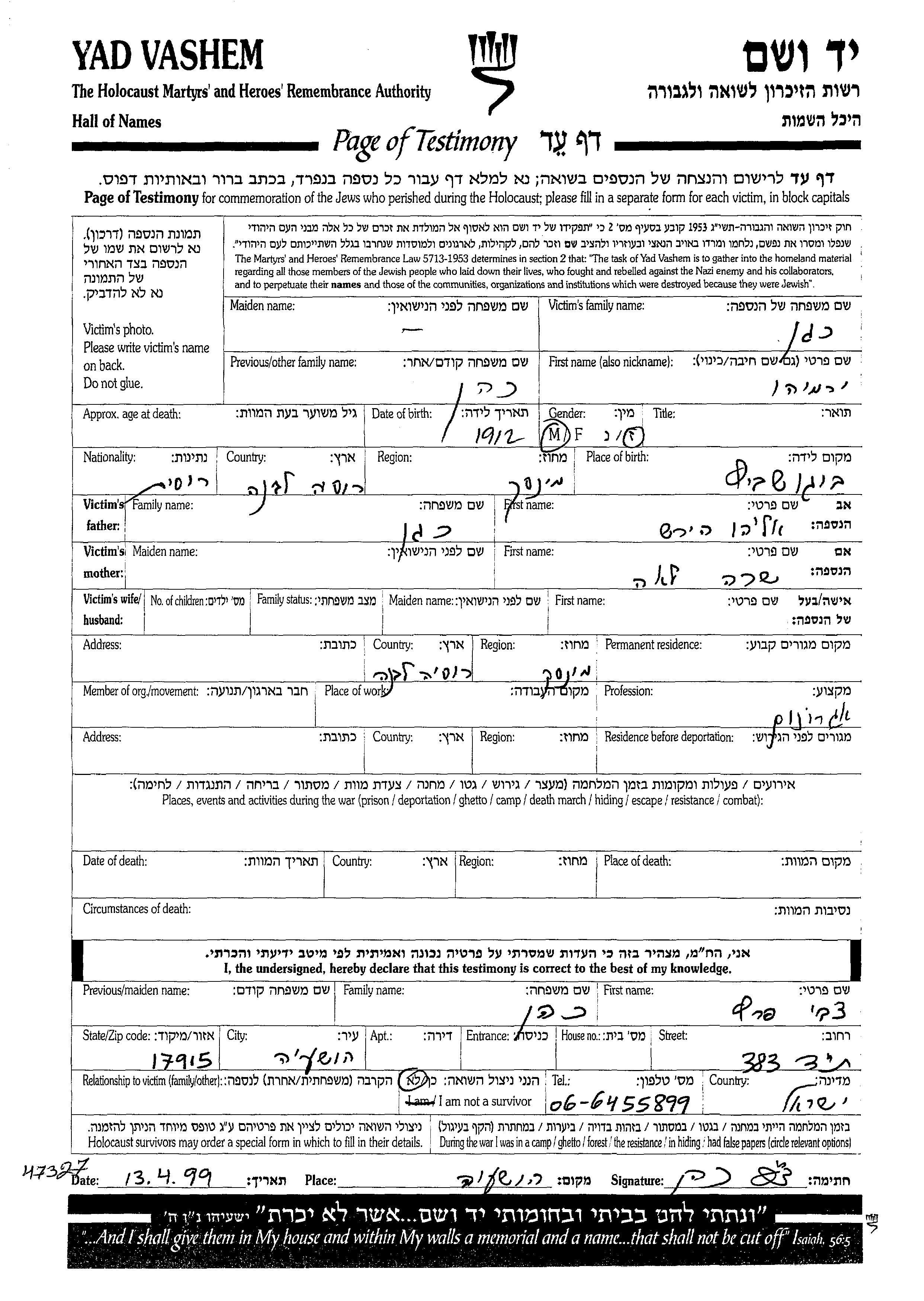 Recherche par date de la mort pendant la période de la Shoah: 1933-1945. Sélectionnez 'Exact'; dans la liste pour rechercher l'année exacte, ou sélectionner '+/- 2 ans'; ou '+/- 5 ans