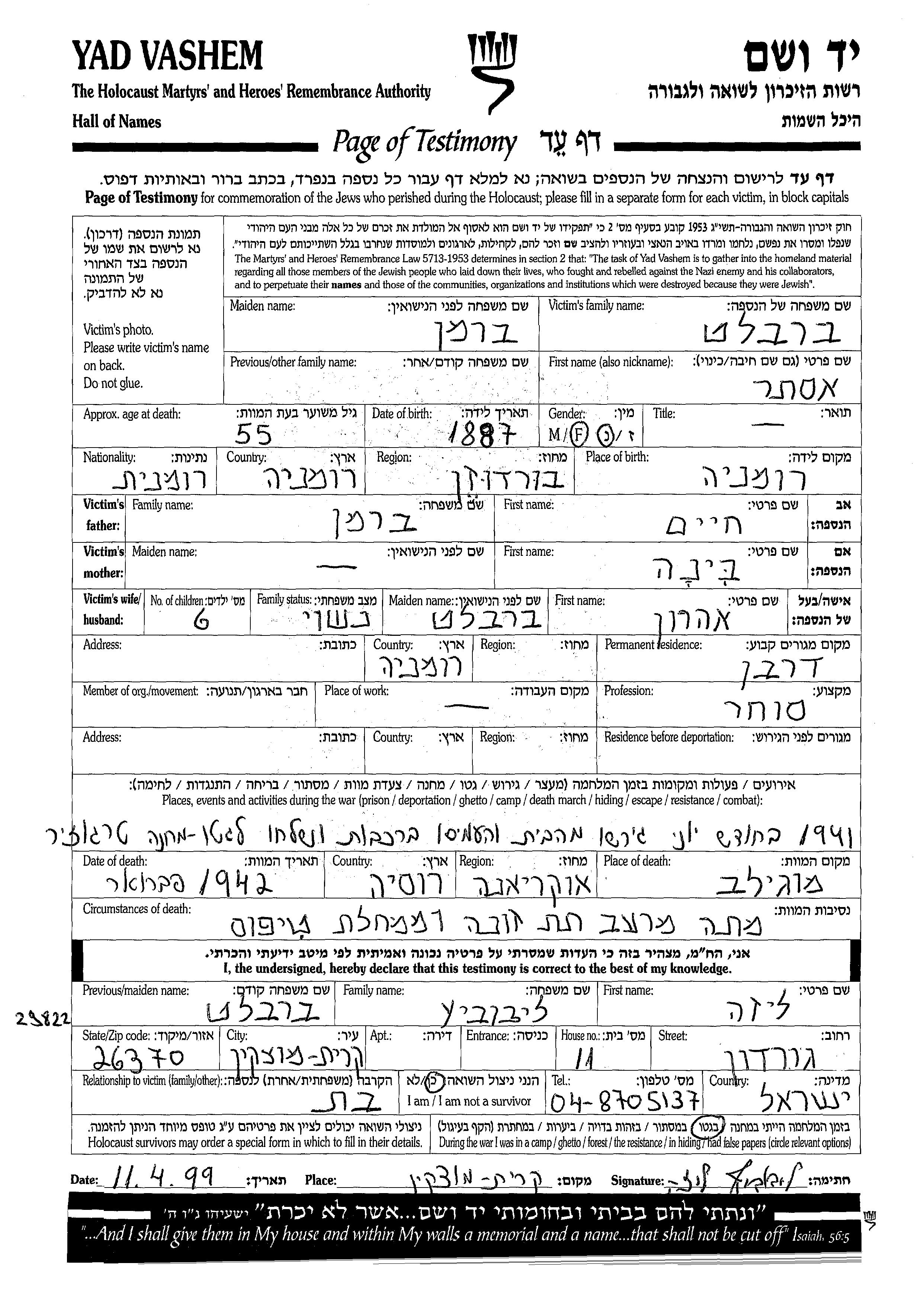 Yad Vashem - Pages of Testimony Names Memorial Collection