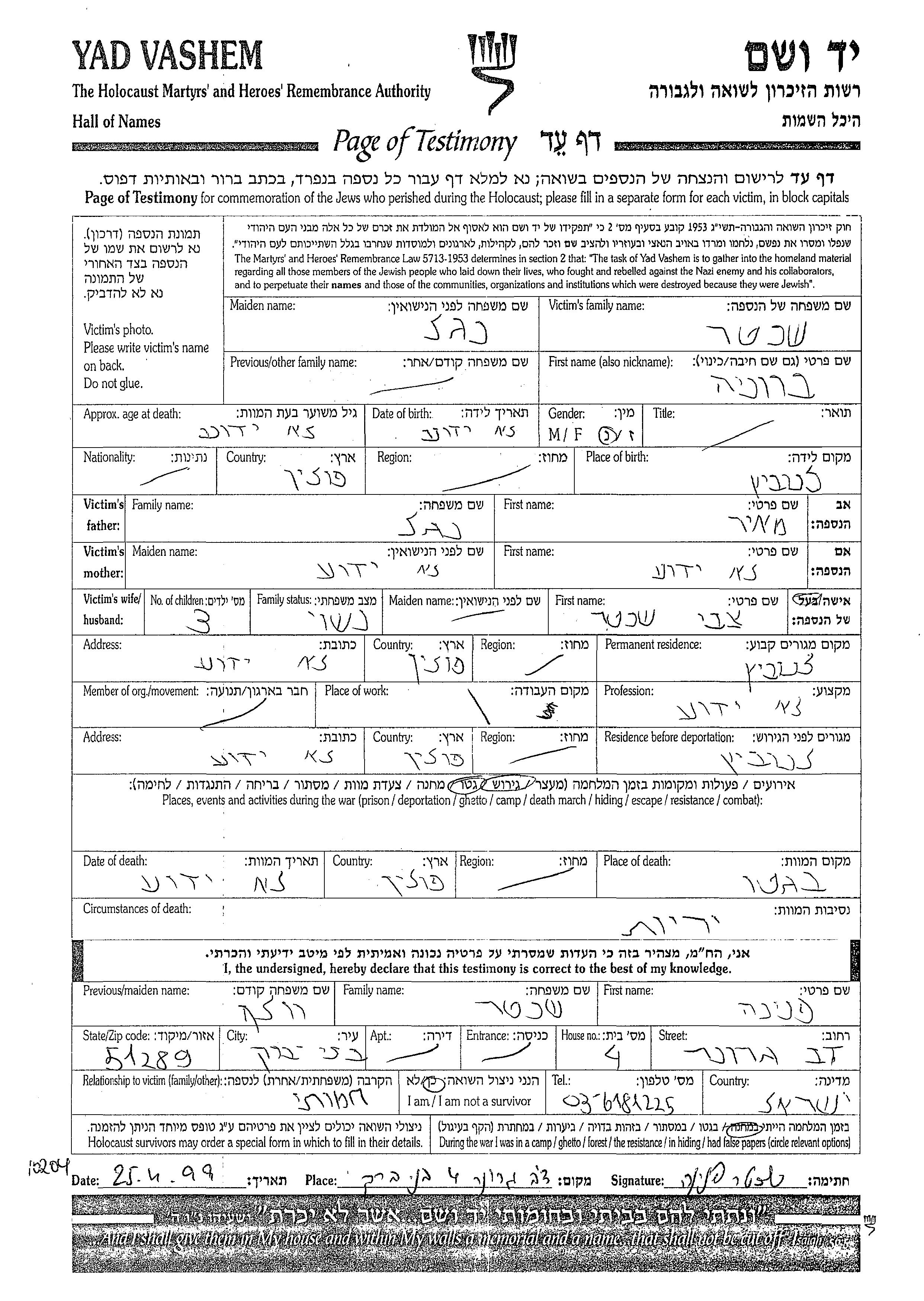 Yad Vashem - Pages of Testimony Names Memorial Collection