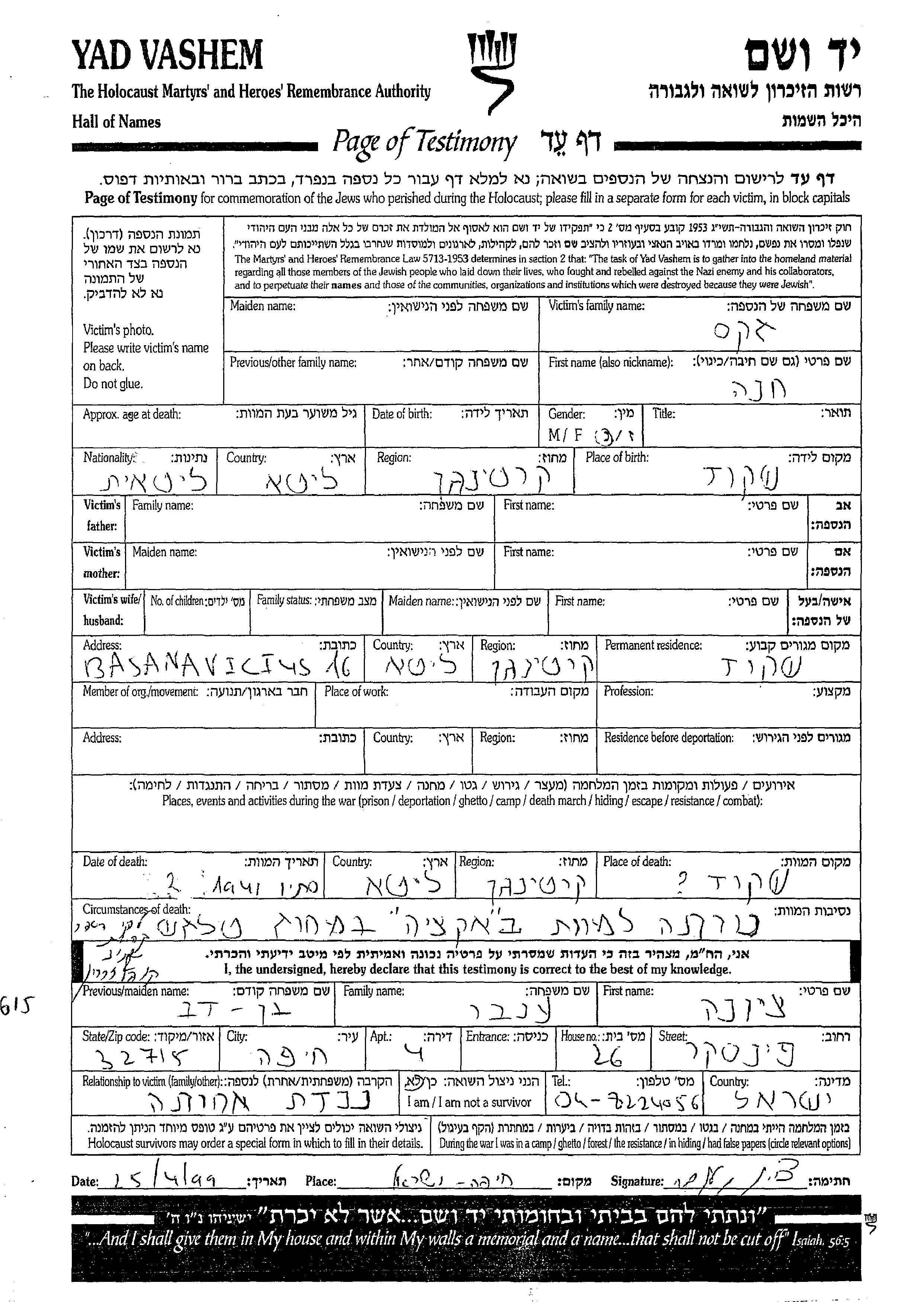 Yad Vashem - Pages of Testimony Names Memorial Collection