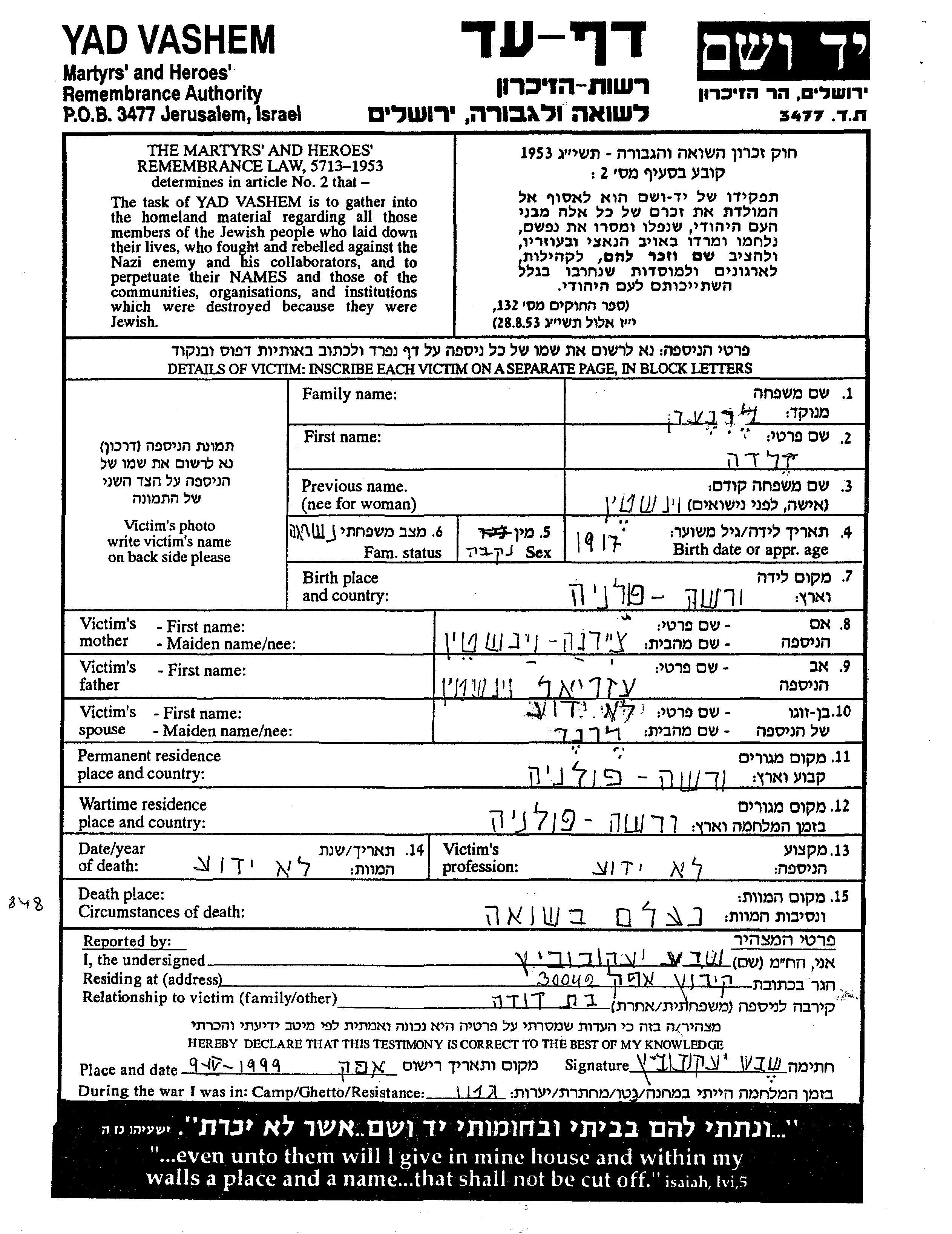 Yad Vashem - Pages of Testimony Names Memorial Collection